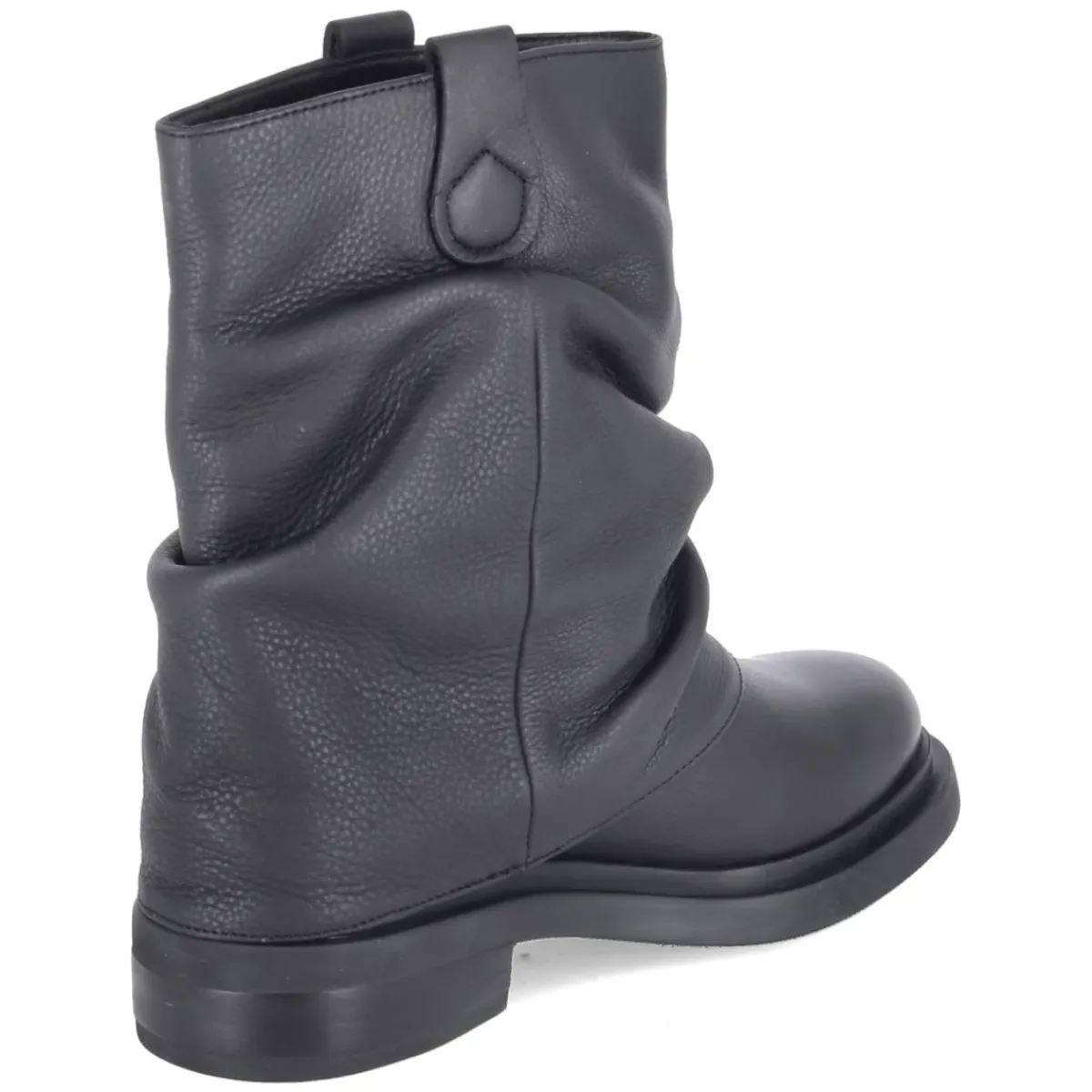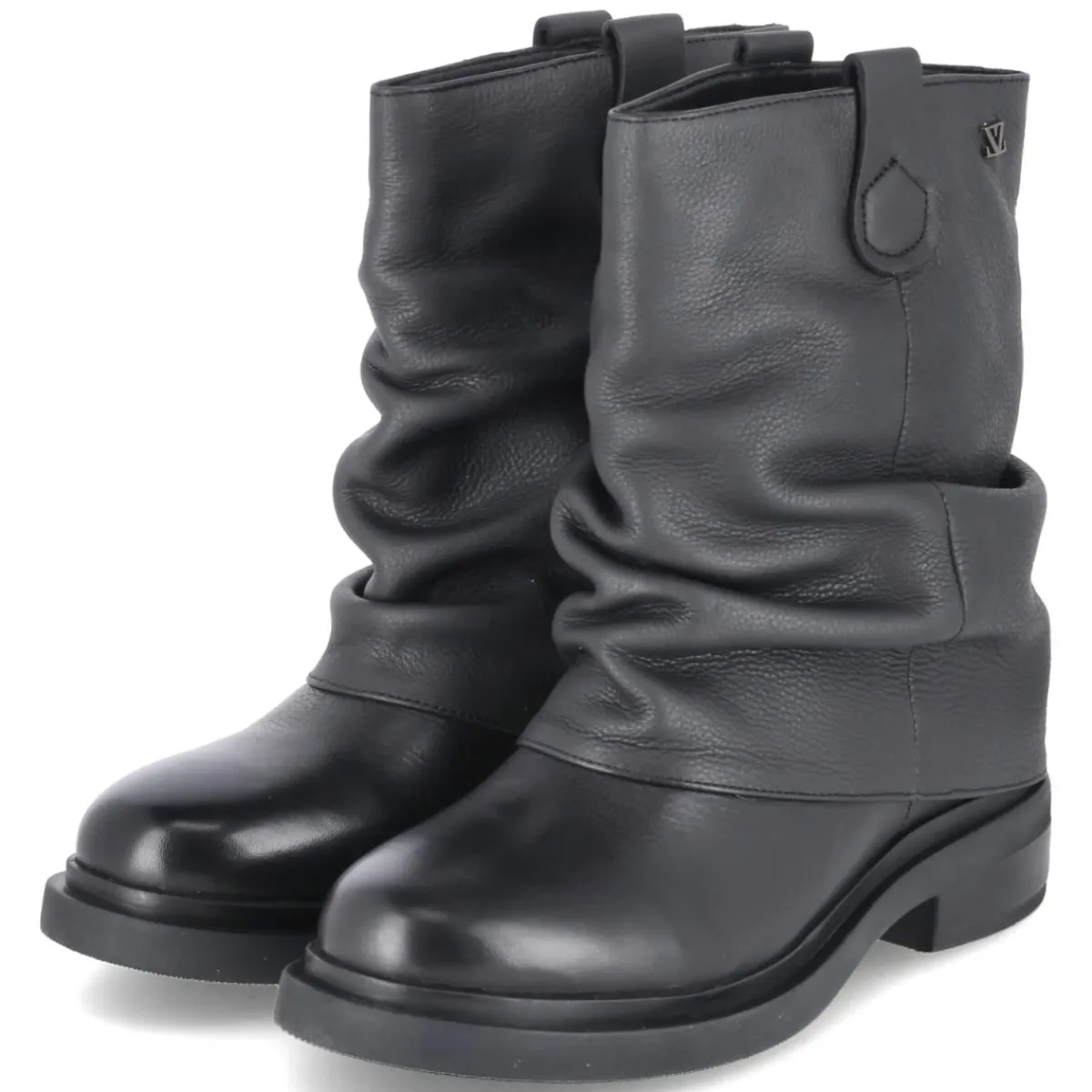 Der LAZAMANI Boots TARI vereint urbanen Stil und durchdachten Komfort. Schwarzes Glattleder in langlebiger Qualität umrahmt die runde Spitze und betont die klare, zeitlose Linie. Die gamaschenähnliche, vernähte Umschlagkrempe setzt einen markanten Akzent und rahmt den Schaft mit subtiler Struktur. Dank zweier Anziehlaschen gelingt der Einstieg mühelos, ganz ohne Verschluss. Ein 3,5 cm hoher Blockabsatz sorgt für standfesten Auftritt und alltagstaugliche Höhe. Die flexible, rutschfeste Laufsohle und das weiche Fußbett begleiten durch lange Tage, während das leichte Futter an kühleren Tagen angenehm wärmt. Die lederne Decksohle schmeichelt dem Fuß und rundet das hochwertige Tragegefühl ab. Der Schnitt fällt größengetreu aus und passt zu erwachsenen Looks mit Anspruch. Modetipp: Mit gerader Denim, Oversize-Wollmantel und einer strukturierten Ledertasche entsteht ein lässig-elegantes Ensemble.