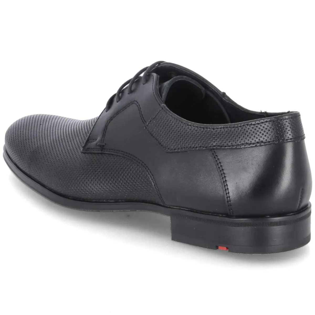 Der Businessschuh LEVIN von LLoyd verbindet klare Linien mit subtiler Raffinesse. Fein geprägte Partien und präzise Ziernähte verleihen dem schwarzen Glattleder eine dezente, gemusterte Tiefe, während die runde Schuhspitze und der 3 cm hohe Blockabsatz klassische Souveränität ausstrahlen. Langlebiges Echtleder trifft auf ein ledernes Fußbett mit integriertem Fersenpolster, das den Komfort über lange Tage hinweg spürbar erhöht. Die verstärkte Ferse unterstützt den Halt, die flexible, rutschhemmende Laufsohle ohne Profil sorgt für leises, sicheres Auftreten. Mit Schnürung und eleganter Optik eignet sich LEVIN für formelle Anlässe wie für den gepflegten Büroalltag. Modetipp: Mit schmalem Anzug in Anthrazit und schwarzem Ledergürtel gelingt ein stimmiger, moderner Business-Look.