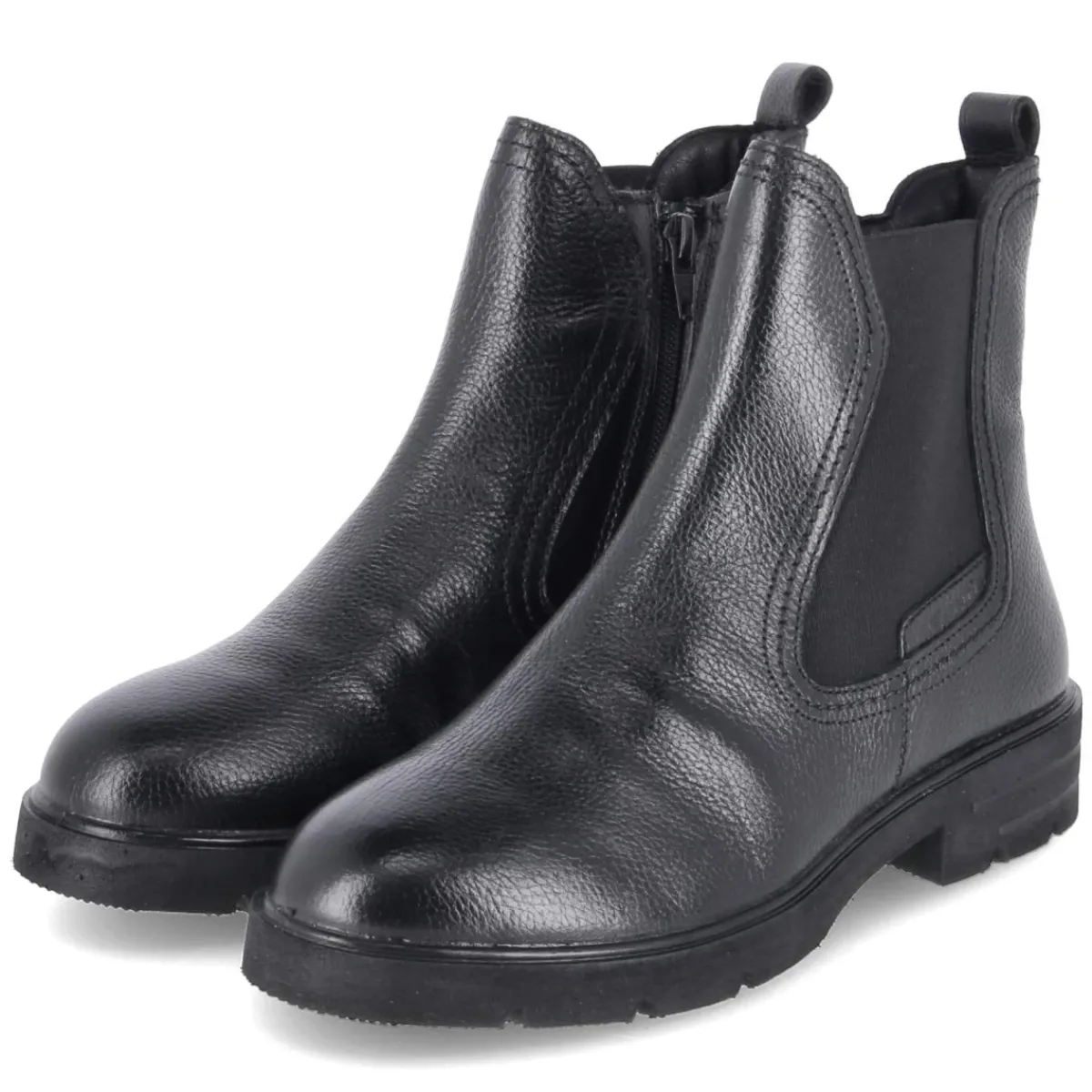 Der Chelsea Boot von Tamaris in klassischem Schwarz verbindet eine zeitlose Silhouette mit durchdachtem Komfort. Der 3,5 cm hohe Blockabsatz sorgt für sicheren Stand im Alltag, während die runde Spitze und das Obermaterial aus Leder und Textil einen hochwertigen, alltagstauglichen Look schaffen. Langlebiges Echtleder trifft auf eine flexible Laufsohle, die bei jedem Schritt geschmeidig mitgeht. Dank praktischem Reißverschluss und Anziehlasche gelingt das Anziehen mühelos, das leichte Futter wärmt an kühlen Tagen und die textile Decksohle mit gepolstertem Fußbett bietet angenehme Dämpfung. Das Modell für Damen fällt normal aus und richtet sich an Erwachsene, die Zuverlässigkeit und Stil schätzen. Modetipp: Besonders harmonisch zu geradem Denim, Oversize-Mantel und feinen Stricksocken oder zu Midikleid und blickdichten Strümpfen.