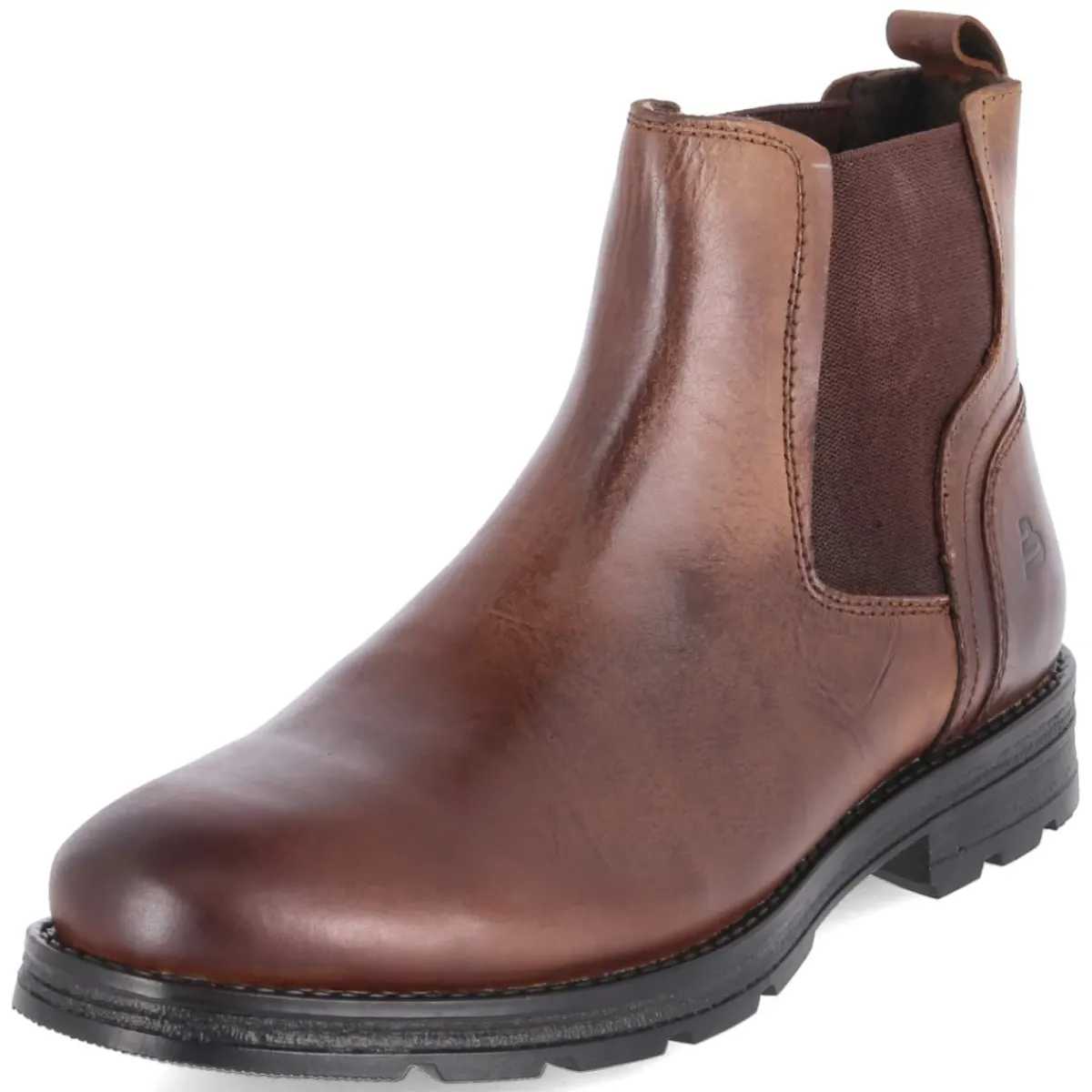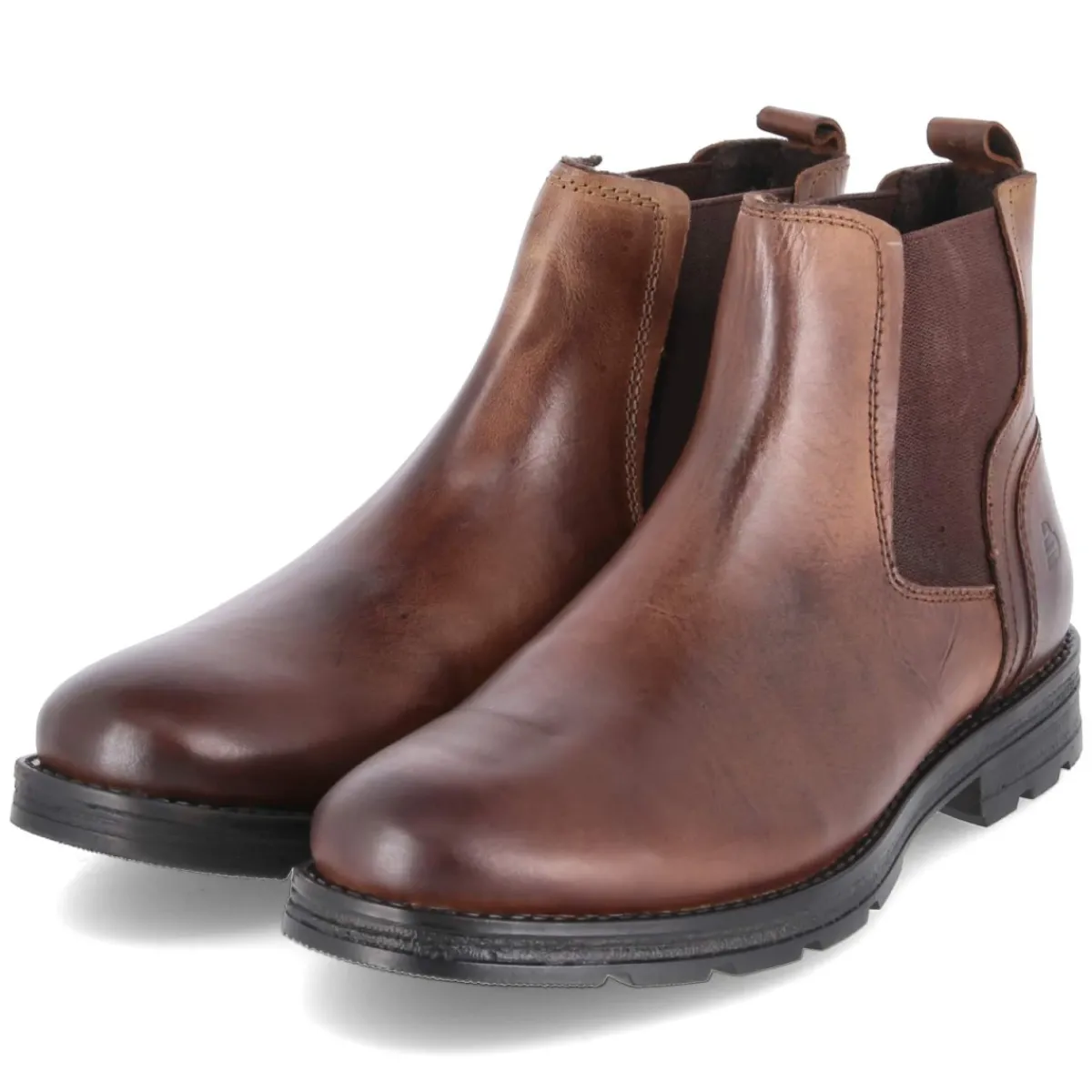 Der Chelsea Boot von Bullboxer interpretiert zeitloses Design mit funktionalem Komfort. Hochwertiges, langlebiges Echtleder in sattem Braun formt ein glattes Obermaterial, das sich dank zwei großer, seitlicher Elastikeinsätze und elastischem Einstieg bequem anpasst. Der Verzicht auf einen Verschluss beschleunigt das Hineinschlüpfen, unterstützt von einer praktischen Anziehlasche. Ein 3,5 cm hoher Blockabsatz und die flexible, rutschfeste Profilsohle sorgen für stabilen Auftritt, während der verstärkte Fersenbereich Halt gibt. Innen verwöhnt eine textile Decksohle; das komfortable, wechselbare Fußbett bietet individuelle Anpassung. Die runde Spitze und die klare Silhouette passen zu Business wie Freizeit. Größenhinweis: fällt normal aus. Modetipp: mit Wollmantel, dunkler Raw Denim und Feinstrick-Rollkragen entsteht ein souveräner Look, der vom Büro direkt ins Dinner geht.