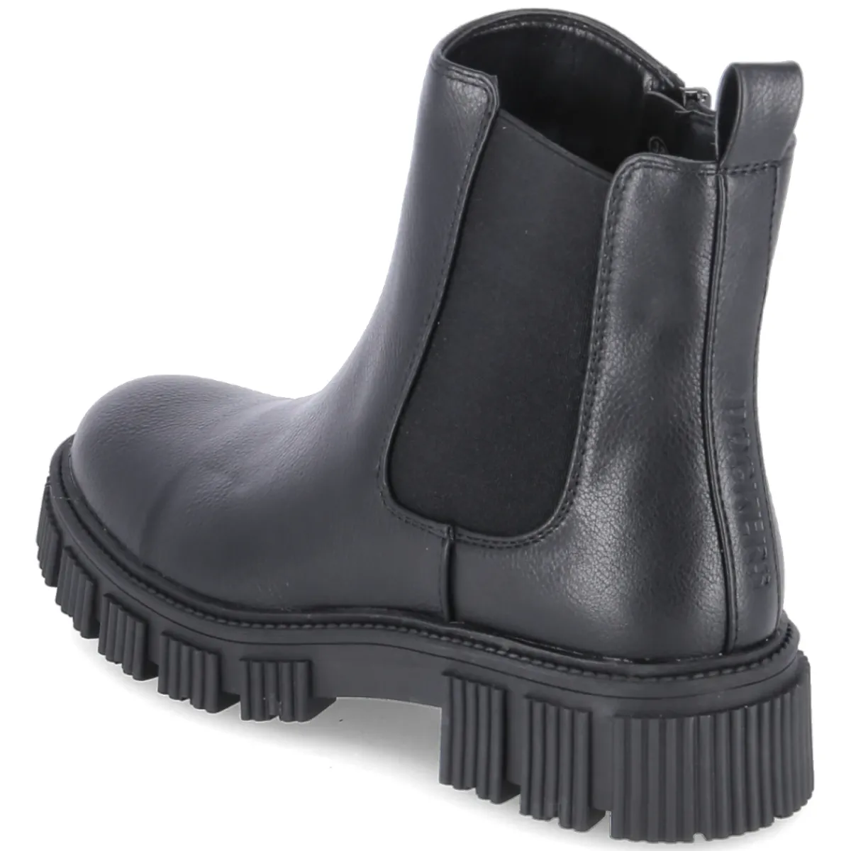 Der Chelsea Boot von Dockers in klassischem Schwarz begleitet Grundschulkinder stilvoll durch Schule und Freizeit. Mit rund zulaufender Spitze, stabilem Blockabsatz von ca. 5 cm und flexibler Profillaufsohle bietet das Modell zuverlässigen Halt. Der seitliche Reißverschluss mit elastischem Einsatz am Schaft ermöglicht einen bequemen Einstieg, die Anziehlasche hilft beim schnellen Hineinschlüpfen. Leichtes Futter wärmt an kühlen Tagen, die weich gepolsterte Textildecksohle schenkt zusätzlichen Komfort. Obermaterial aus Textil und Synthetik ist pflegeleicht und alltagstauglich, verstärkte Zehen- und Fersenbereiche erhöhen die Robustheit. Dezent gelabelt und mit Zierriemen samt Metallschnalle erhält der Boot eine smarte Note. Modetipp: Zu dunkler Skinny-Jeans, Oversize-Strick und einem Wollmantel entsteht ein moderner Schuloutfit-Look, der auch am Nachmittag auf dem Spielplatz überzeugt.