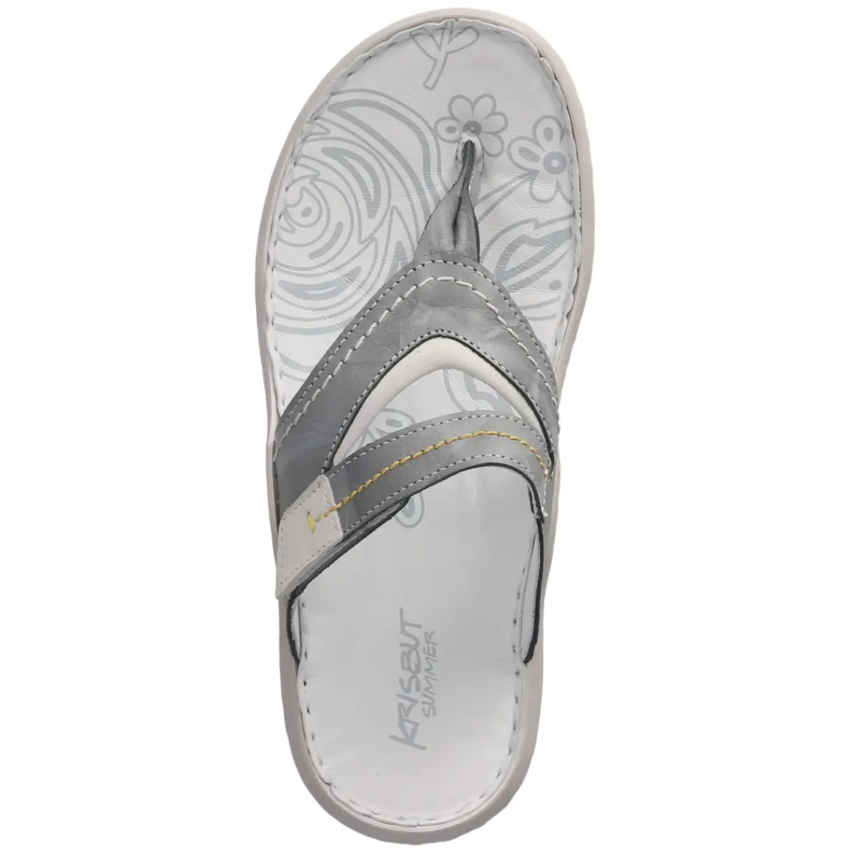Diese Damen-Pantoletten von Krisbut verbinden entspannten Komfort mit klarer Linie. Weiches, atmungsaktives Echtleder in edlem Grau umschließt den Fuß, während die hautfreundliche Lederdecksohle ein angenehmes Klima bewahrt. Der praktische Klettverschluss ermöglicht eine passgenaue Weitenregulierung und erleichtert das An- und Ausziehen, die runde Schuhspitze bietet Zehenfreiheit für lange Tage auf den Beinen. Das Obermaterial aus hochwertigem Glattleder wirkt dezent und fügt sich mühelos in Business- wie Freizeitlooks ein. Die Passform fällt normal aus und überzeugt durch angenehme Stabilität ohne aufzutragen. Ob unterwegs in der Stadt oder auf Reisen, diese Pantolette liefert verlässlichen Alltagskomfort in zeitloser Optik. Modetipp: Zu einer weit schwingenden Leinenhose und einem tonalen Stricktop entsteht ein moderner Monochrom-Look; feiner Silber- oder Edelstahlschmuck setzt puristische Akzente.