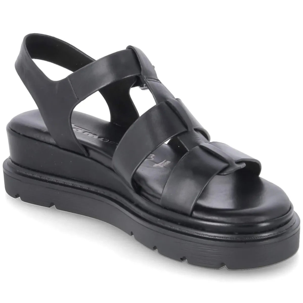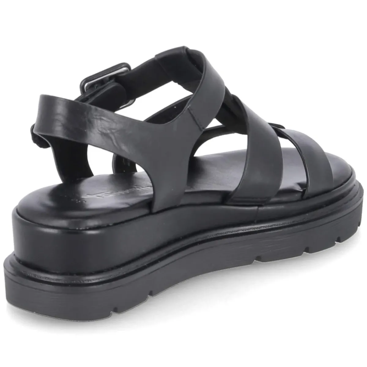 Schwarze Sandale von Tamaris, gefertigt aus langlebigem Echtleder mit edler Glattleder-Optik. Die offene Silhouette lässt Luft an den Fuß, während die weiche Lederdecksohle und das gepolsterte Fußbett bei Stadtspaziergängen wie abendlichen Anlässen langanhaltenden Komfort bieten. Ein bequemer Klettverschluss sorgt zusammen mit einem Klettverschlussriemen samt verstellbarer Schnalle für präzisen Halt und schnelles An- und Ausziehen. Die starke Laufsohle mit leichtem Keil stabilisiert den Auftritt und streckt subtil die Silhouette. Dank normaler Passform fällt das Modell größengetreu aus. Hochwertige Verarbeitung, klare Linien und die markentypische Sorgfalt machen diese Damen-Sandale zu einem vielseitigen Begleiter der Saison. Modetipp: Zu Leinen in Naturtönen und fließenden Midi-Röcken entsteht ein moderner Kontrast; metallische Accessoires greifen den schlichten Look elegant auf.