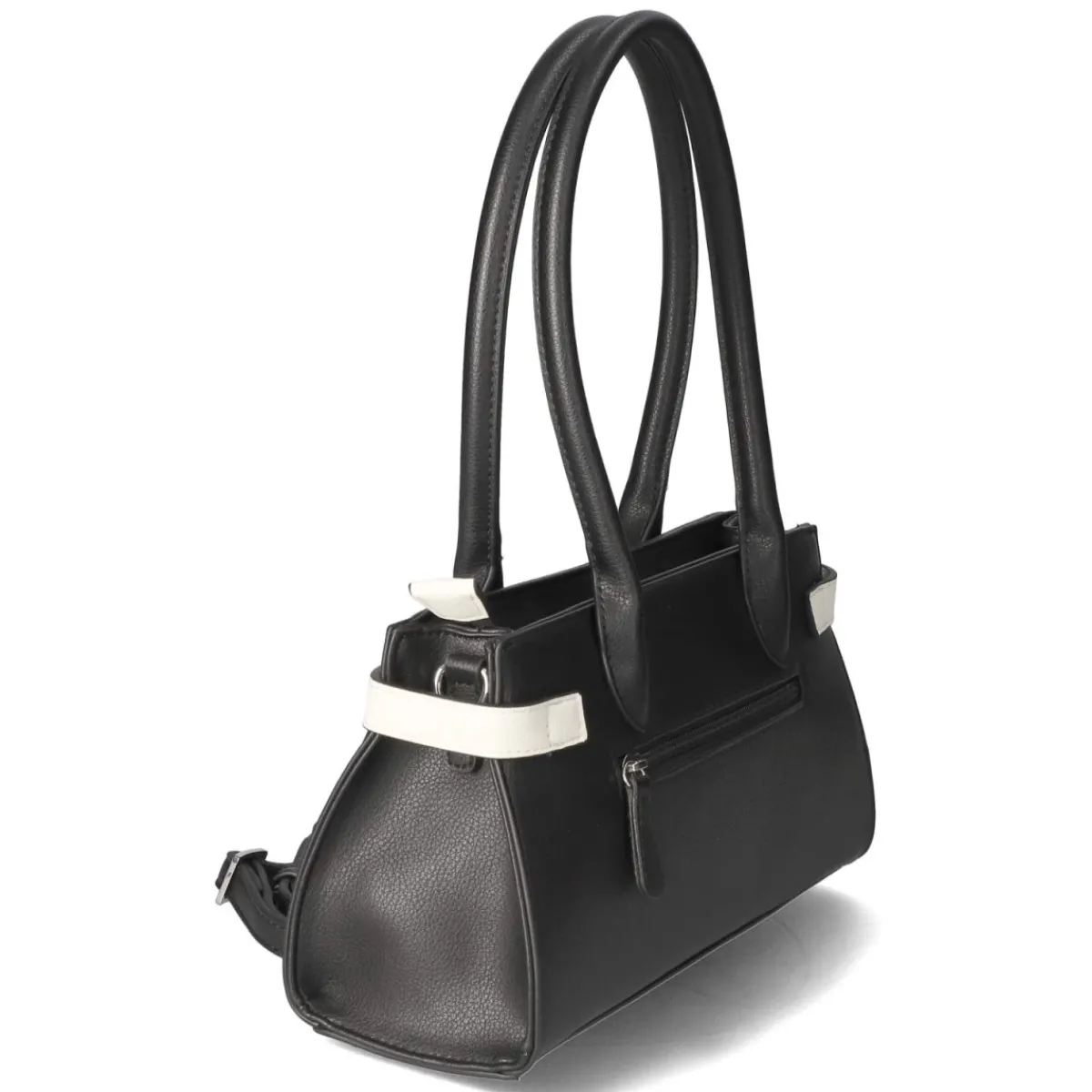 Die schwarze Schultertasche für Damen vereint klare Linien mit praktischer Organisation – ideal für Alltag und Abendevents. Mit kompakten Maßen von ca. 15 x 32 x 9 cm und einem Volumen von etwa 4 Litern bietet sie Platz für Essentials, ohne aufzutragen. Zwei feste Schulterriemen garantieren sicheren Halt, während ein abnehmbarer, verstellbarer Schulterriemen bis ca. 140 cm flexible Tragemöglichkeiten von Schulter bis Crossbody eröffnet. Der weiße, verstellbare Zierriemen setzt einen modernen Kontrast und unterstreicht die strukturierte Silhouette. Ein verstärkter Boden bewahrt die Form, das rückseitige Reißverschlussfach sorgt für schnellen Zugriff. Im Reißverschlusshauptfach bringen ein Steckfach und ein weiteres Reißverschlussfach Ordnung. Modetipp: Zur monochromen Kombination mit schwarzer Jeans, weißem Hemd und Slingbacks wirkt der weiße Akzent besonders edel.