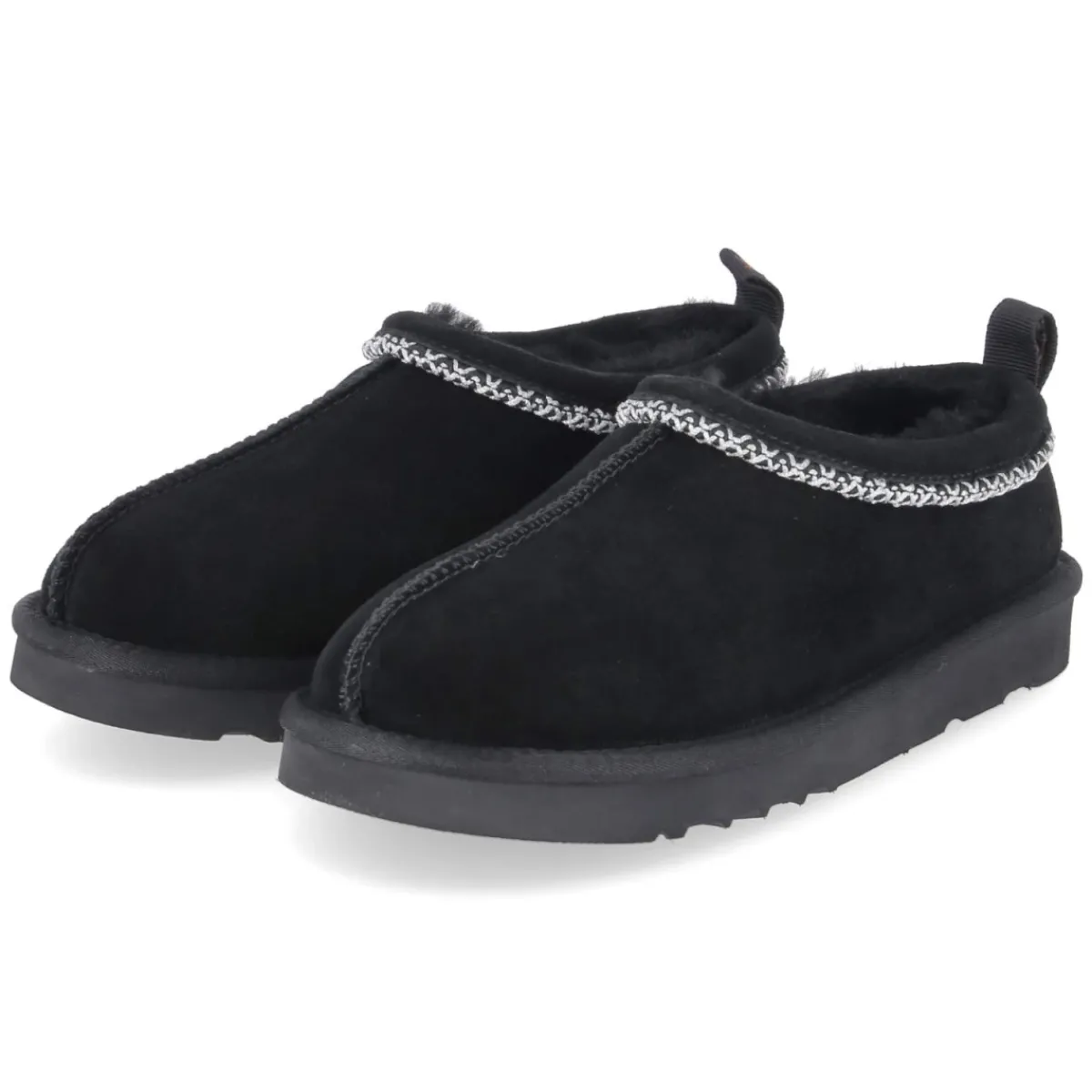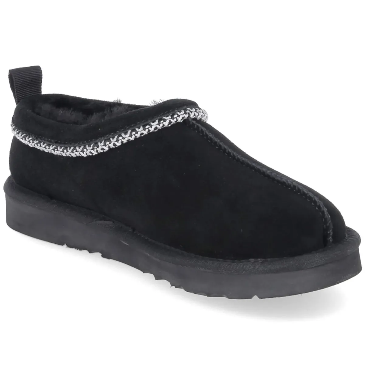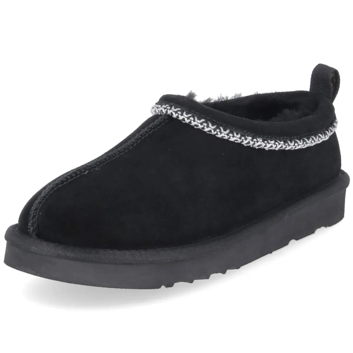 Der Slipper OUTBACK von Australia Luxe setzt auf pures Wohlbefinden und klare Formen. Weiches Rauleder in tiefem Schwarz trifft auf ein kuschelig warmes Lammfellfutter, das den Fuß umschmeichelt und behagliche Wärme spendet. Die runde Spitze und der tiefe Einstieg unterstützen das bequeme Hineinschlüpfen, während die weiße, grobe Ziernaht einen markanten Kontrast bildet. Langlebiges Echtleder und eine textile Decksohle sorgen für angenehmen Tragekomfort über viele Saisons. Das natives Design wird durch die Anziehlasche mit feiner Markenstickerei abgerundet. Fällt normal aus und ist damit unkompliziert in der Größenwahl. Modetipp: Zu geraden Denim-Silhouetten, einem weichen Wollmantel und einer Ton-in-Ton-Umhängetasche entsteht ein entspannter City-Look, der den rustikalen Charme des Slippers modern interpretiert.