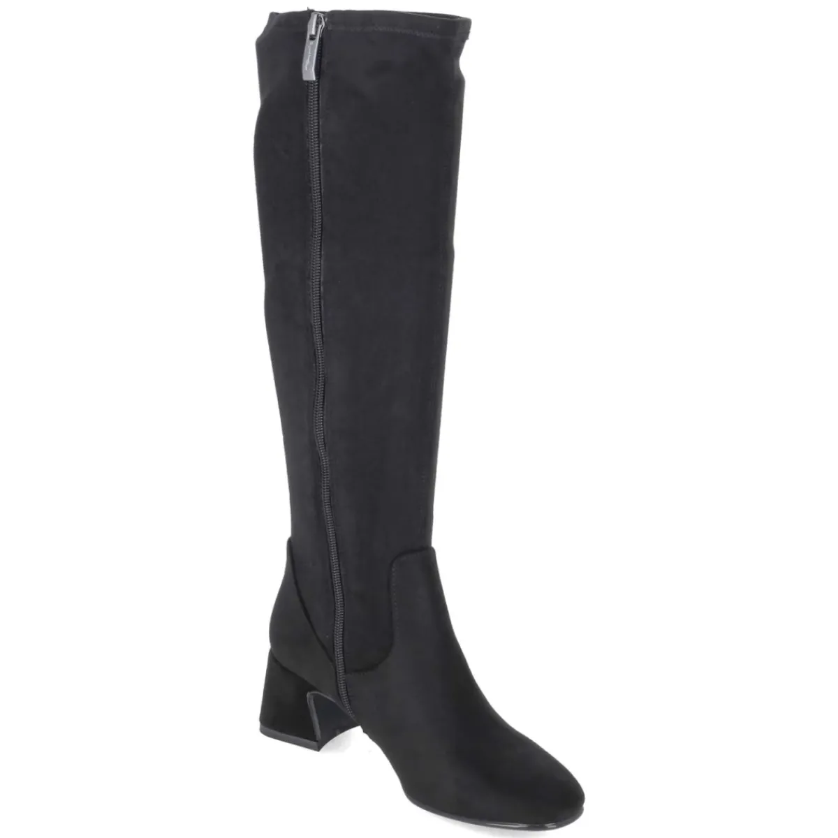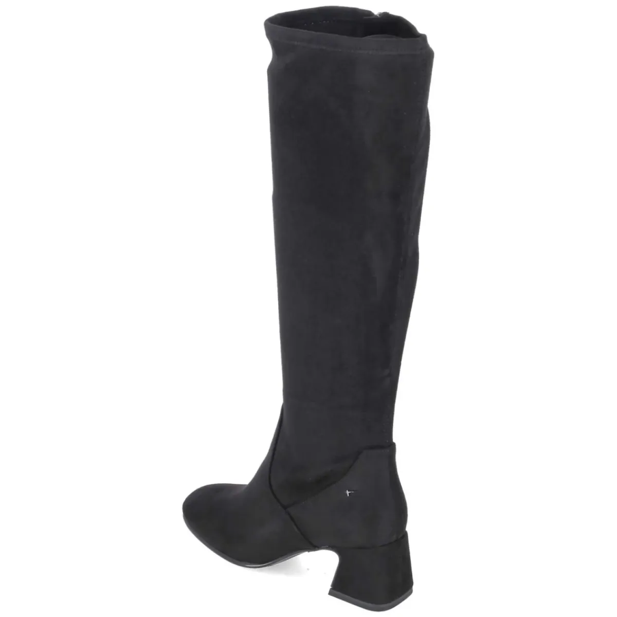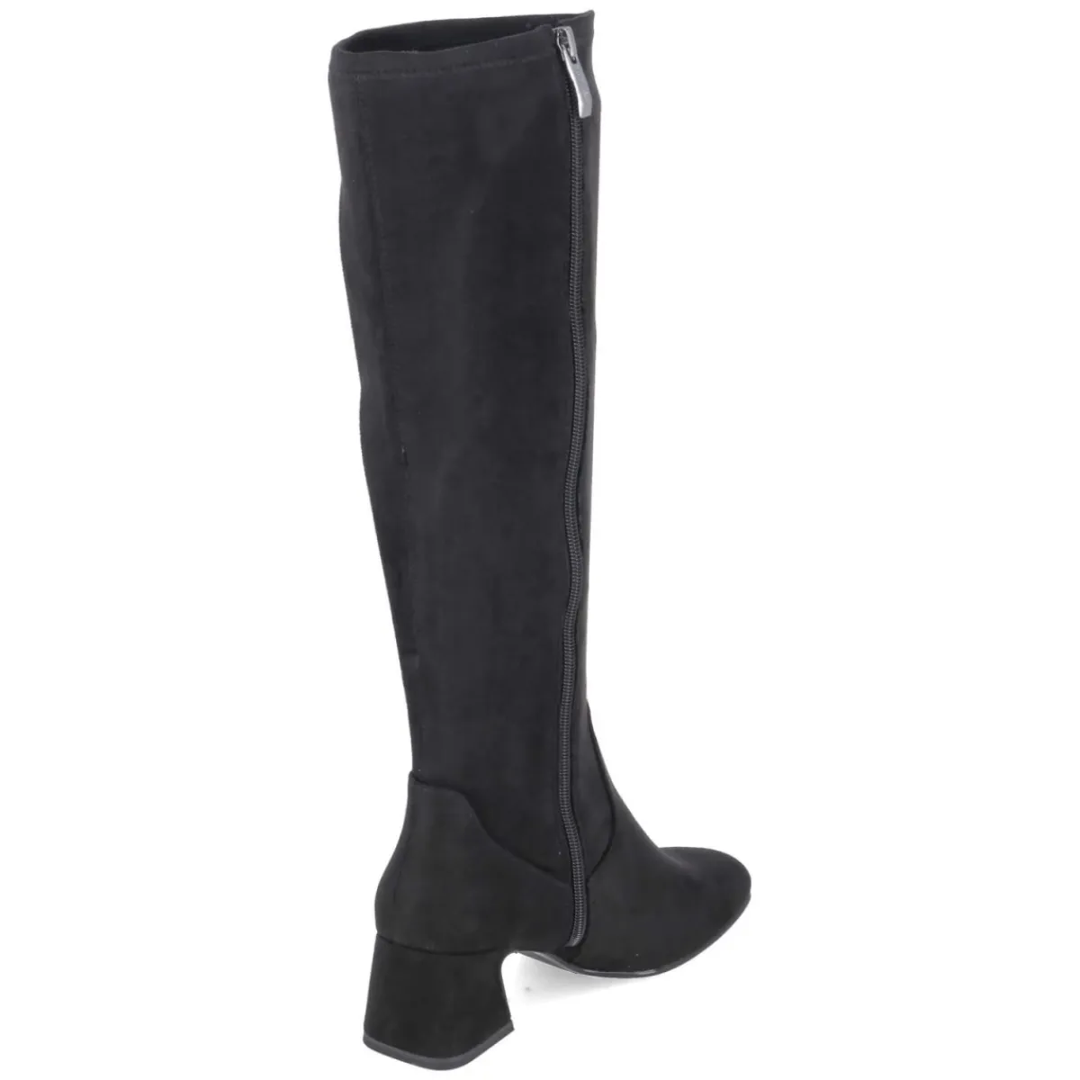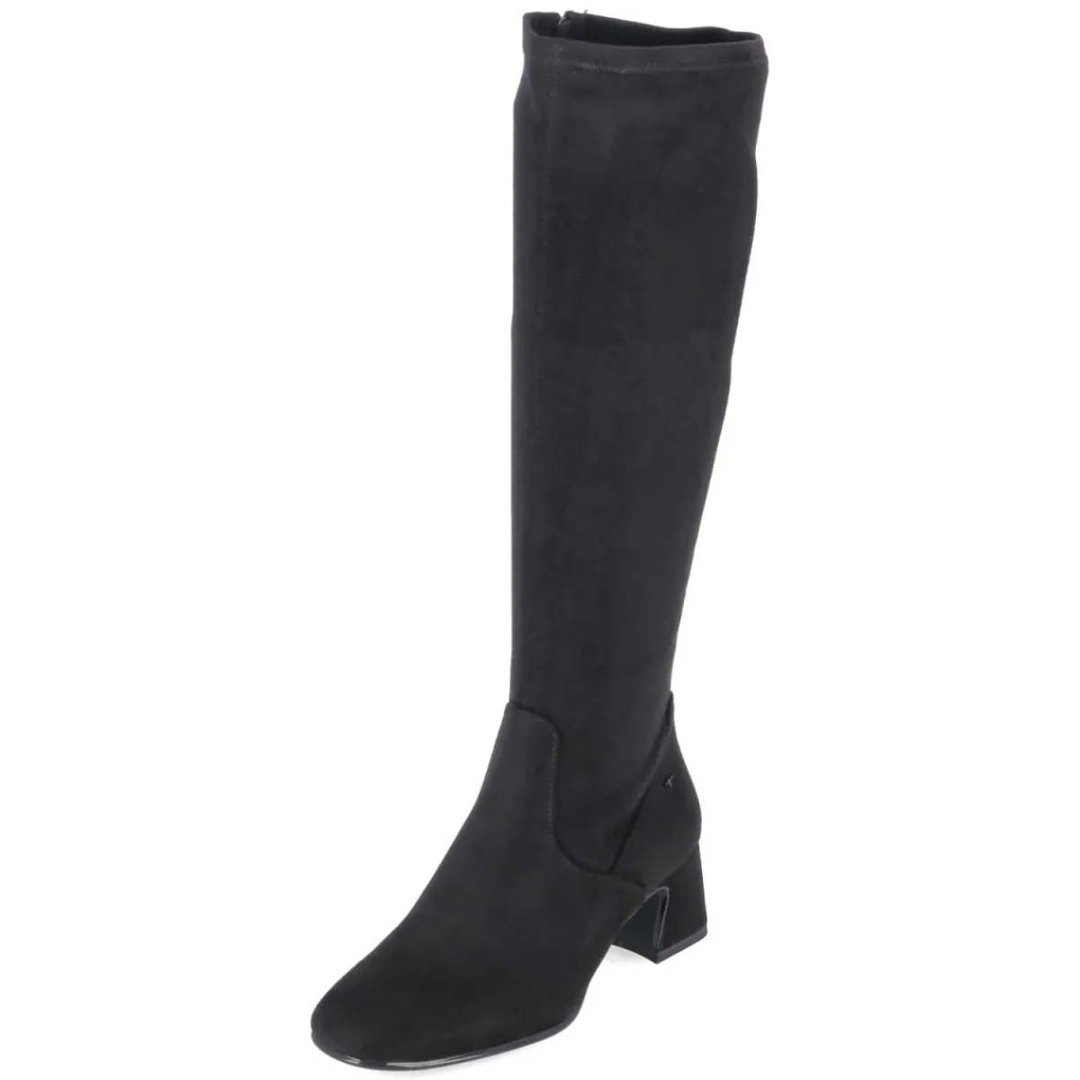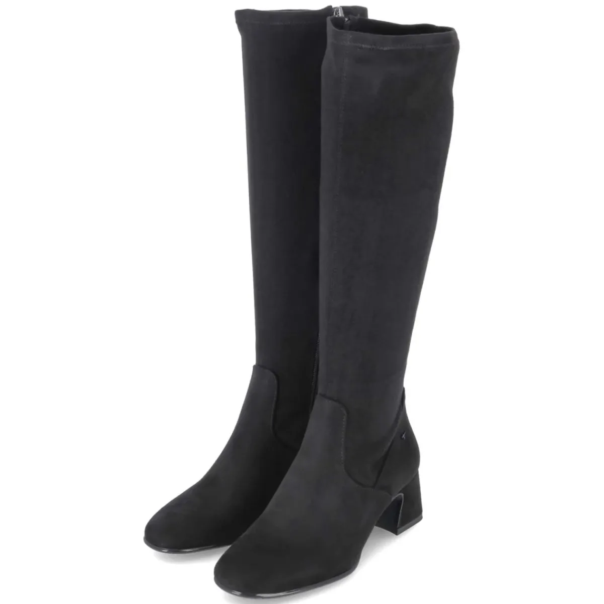 Der kniehohe Stiefel von Tamaris vereint klare Linien mit hohem Tragekomfort. Das schwarze Obermaterial aus Textil zeigt eine samtige Oberfläche, die dem cleanen Design Tiefe verleiht. Die runde Schuhspitze und das gepolsterte Fußbett sorgen für ein angenehmes Laufgefühl, während der 5,5 cm hohe Blockabsatz die Silhouette sanft streckt und sicheren Halt bietet. Ein bequemer Reißverschlußeinstieg und der leicht stretchige Schaft erleichtern das Anziehen und schmiegen sich dem Bein an; mit ca. 40 cm Höhe und 36 cm Umfang sitzt der Schaft ausgewogen. Die textile Decksohle, der verstärkte Fersenbereich und die flexible, rutschfeste Laufsohle begleiten zuverlässig durch den Tag. Der Sitz fällt größengetreu aus. Modetipp: Mit Midikleid, Wollmantel und blickdichter Strumpfhose entsteht ein moderner City-Look mit ruhiger Eleganz.