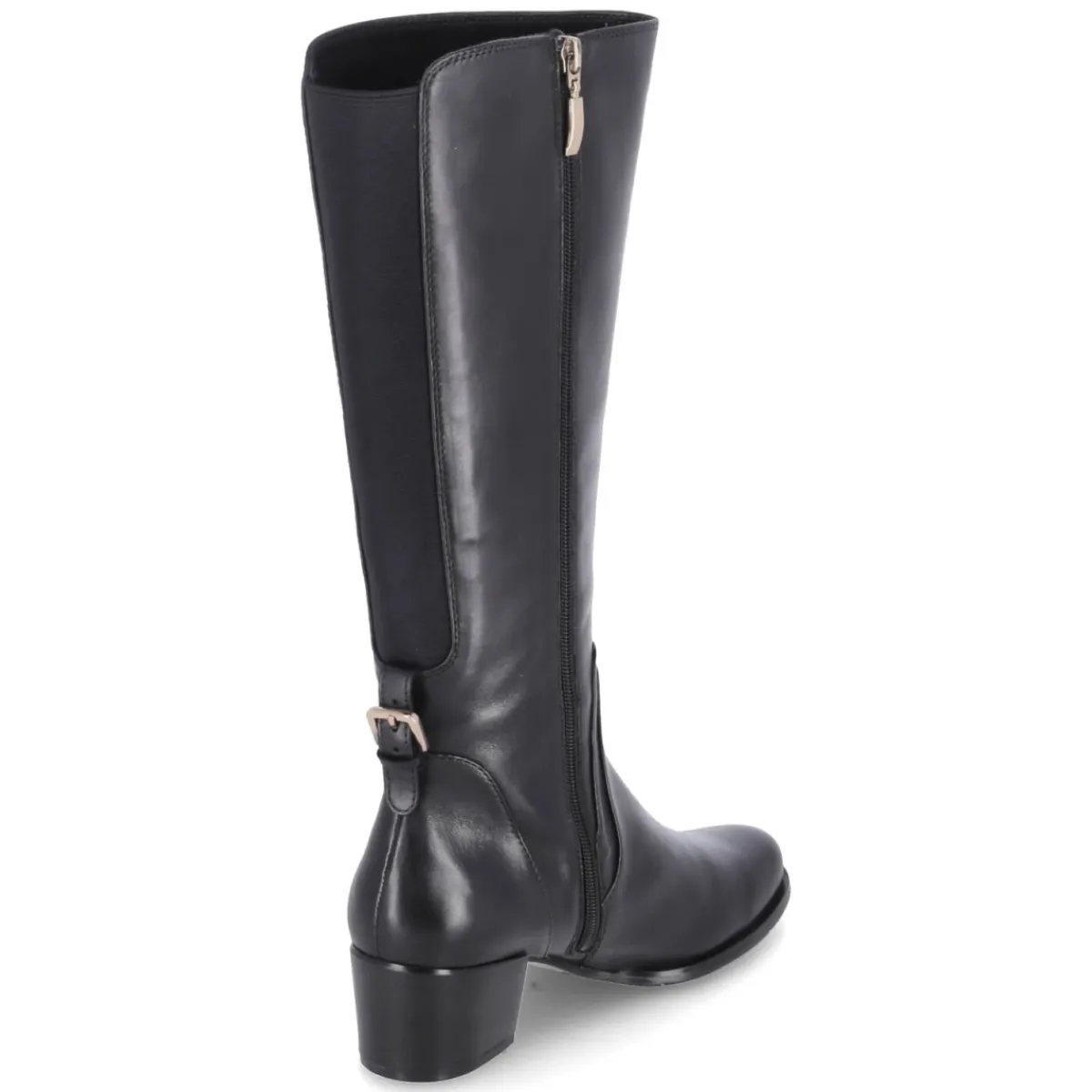 Der Stiefel JOLENE 22 von Kaerlek verbindet urbanen Chic mit verlässlichem Komfort. Schwarzes Glattleder und eine runde Spitze verleihen zeitlose Eleganz, goldglänzende Metallelemente und eine Zierschnalle setzen edle Akzente. Der 5,5 cm hohe Blockabsatz sorgt für Stabilität, die flexible, rutschhemmende Laufsohle für souveränen Tritt. Ein komfortabler Reißverschlußeinstieg und der hinten integrierte Elastikeinsatz erleichtern das Anziehen und optimieren die Passform; der Varioschaft passt sich unterschiedlichen Waden an. Leichtes Fleecefutter und ein Fleece-Fußbett halten warm an kühleren Tagen, das Wechselfußbett sowie die Decksohle aus Textil & Synthetik unterstützen angenehmes Klima. Eine verstärkte Ferse erhöht die Langlebigkeit des Echtleders. Modetipp: Harmoniert besonders schön mit Midikleid und Wollmantel, dazu blickdichte Strümpfe für eine schlanke Silhouette.
