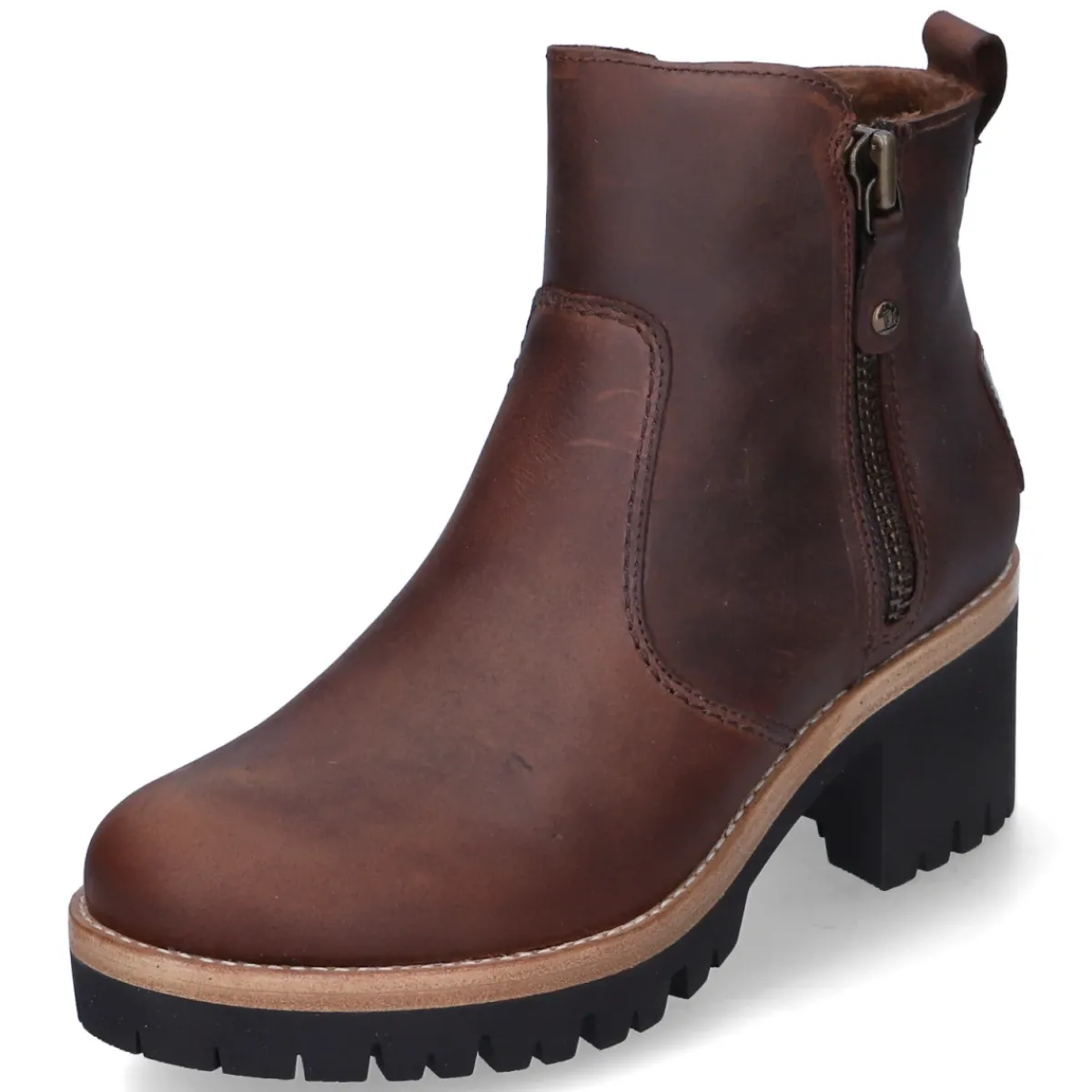 Die Stiefeletten PAULINE IGLOO von Panama Jack verbinden urbane Eleganz und wintertaugliche Funktion. Das braune Obermaterial aus hochwertigem Glattleder zeigt eine klare Linie, die runde Spitze und der 6,5 cm hohe Blockabsatz sorgen für eine feminine, zugleich stabile Silhouette. Innen verwöhnt warmes Lammfellfutter, das in Kombination mit der Lederdecksohle ein wohliges, atmungsaktives Fußklima begünstigt. Dank wasserfesten, wasserabweisenden Eigenschaften bleibt der Schuh auch bei nassem Wetter ein verlässlicher Begleiter. Der seitliche Reißverschluss ermöglicht einen bequemen Einstieg; die Passform fällt normal aus. Als Allrounder für erwachsene Damen punktet dieses Modell mit Komfort und Langlebigkeit im Alltag wie auf winterlichen Ausflügen. Modetipp: Zu geripptem Strickkleid und einem langen Wollmantel getragen, entsteht ein zeitloser Look in natürlichen Brauntönen.