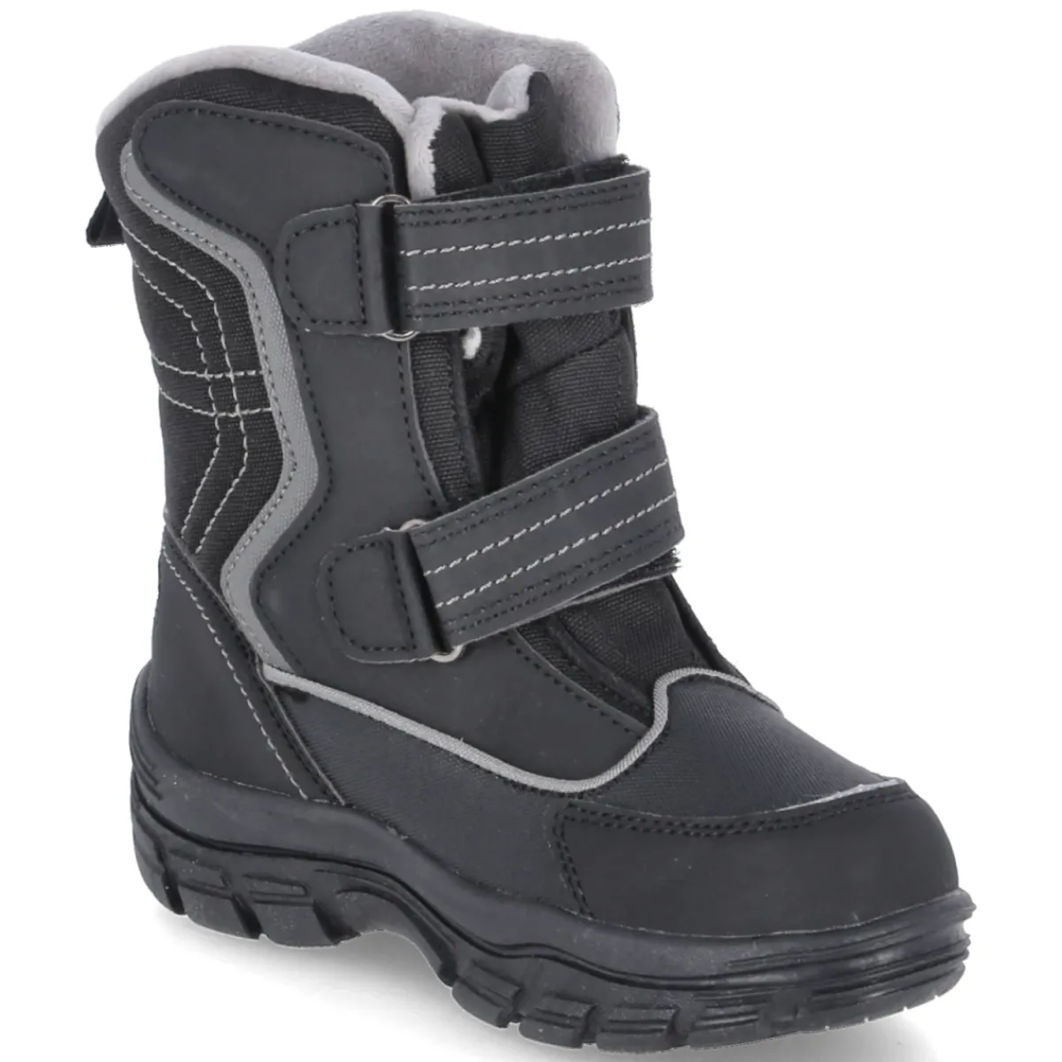 Die Winterboots K-LENO V RTX von Kangaroos verbinden kindgerechten Komfort mit verlässlichem Wetterschutz. Das sportliche Design in Schwarz wird durch ein robustes Obermaterial aus Textil und Synthetik ergänzt, während ROOSTEX Nässe zuverlässig abhält und das Modell wasserfest macht. Warmfutter und gepolsterte Decksohle speichern Wärme und sorgen gemeinsam mit dem gut gepolsterten Einstieg für behagliches Tragegefühl an kalten Tagen. Zwei praktische Klettverschlüsse erleichtern das An- und Ausziehen, die runde Schuhspitze gibt Zehen Bewegungsfreiheit. Verstärkungen an Zehen und Ferse erhöhen die Haltbarkeit, die flexible, rutschhemmende Laufsohle bietet sicheren Grip auf winterlichen Wegen. Das Modell fällt größengetreu aus und eignet sich ideal für aktive Kleinkinder. Modetipp: Zu softem Fleece, einer Steppjacke in Signalton und einer farbigen Strickmütze entsteht ein funktionaler, moderner Winterlook.