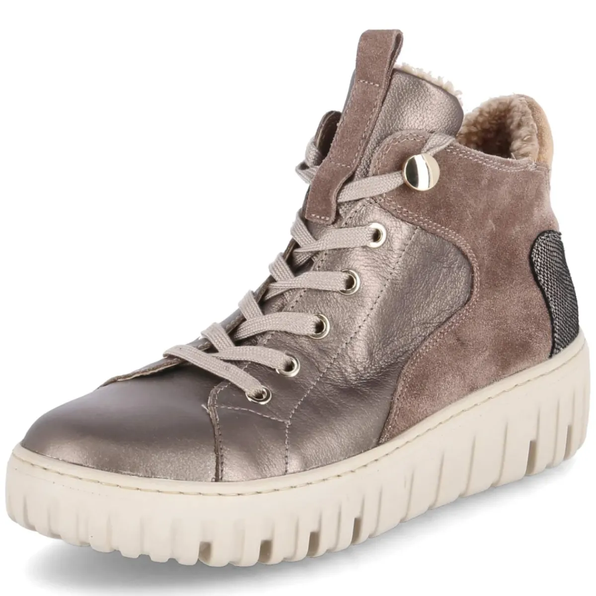Die Winterstiefeletten H-LIVIA von Waldläufer verbinden wohltuende Wärme mit urbanem Glanz. Langlebiges Echtleder in edlem Bronze mit Metallic-Finish verleiht dem Look Tiefe, während das kuschelige Warmfutter an frostigen Tagen verlässlich schützt. Die runde Schuhspitze sorgt für angenehme Zehenfreiheit. Schnürsenkel erlauben eine individuelle Anpassung, der zusätzliche Reißverschluss erleichtert den Einstieg. Ein Wechselfußbett unterstützt personalisierten Komfort, auch für eigene Einlagen geeignet. Das Modell fällt größer aus und umschmeichelt den Fuß in einer bequemen Passform. Eine ausgewogene Kombination aus Stil und Funktionalität, die den Alltag souverän meistert. Modetipp: Zu Strickkleid und Wollmantel kommt der Bronze-Ton besonders schön zur Geltung; blickdichte Strumpfhose und ein Schal in Naturtönen runden den eleganten Winterlook ab.