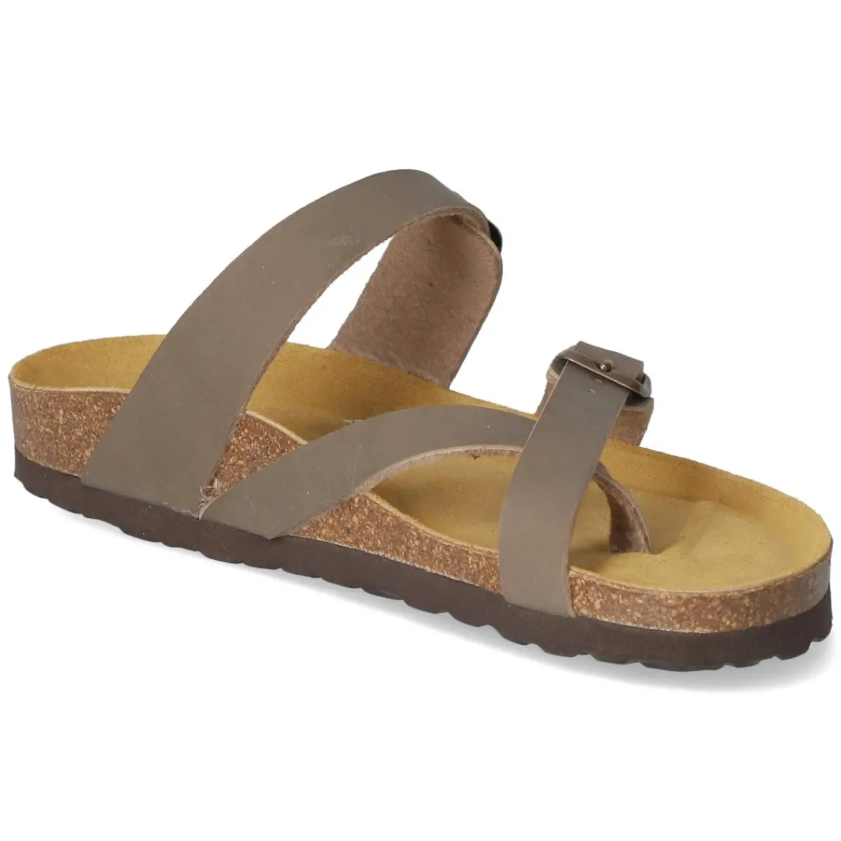 Der Zehentrenner von Beliana zeigt sich in warmem Braun und verbindet lässigen Sommerstil mit durchdachtem Komfort. Das Obermaterial aus Synthetik überzeugt mit pflegeleichter Oberfläche, während die lederne Decksohle und das vorgeformte, weich gepolsterte Fußbett ein angenehmes Tragegefühl über den ganzen Tag bieten. Eine flexible Laufsohle unterstützt den natürlichen Abrollvorgang und sorgt für Trittsicherheit auf Stadtpflaster wie auf Promenaden. Dank sicherer Schnallen und verstellbarem Verschluss lässt sich der Sitz präzise anpassen. Die offene Schuhspitze unterstreicht den luftigen Charakter und macht das Modell zur vielseitigen Wahl für Damen. Der Schnitt fällt normal aus und erleichtert die Größenauswahl. Modetipp: Ideal zu einem cremefarbenen Midikleid aus Baumwolle und einer Flechttasche, ergänzt durch zarten Goldschmuck.