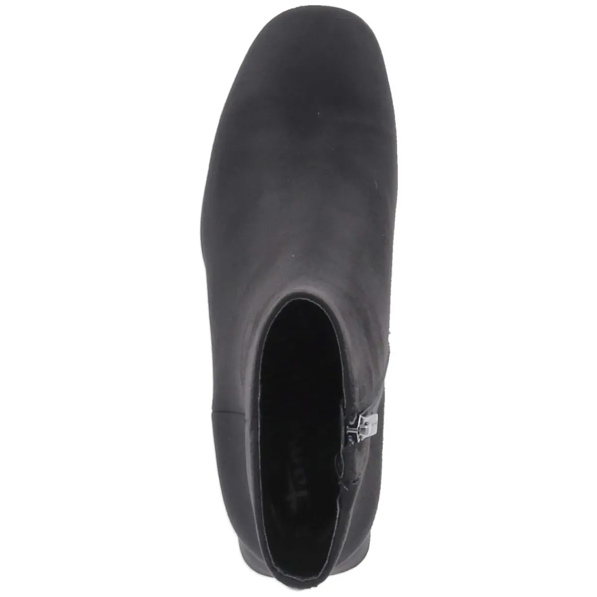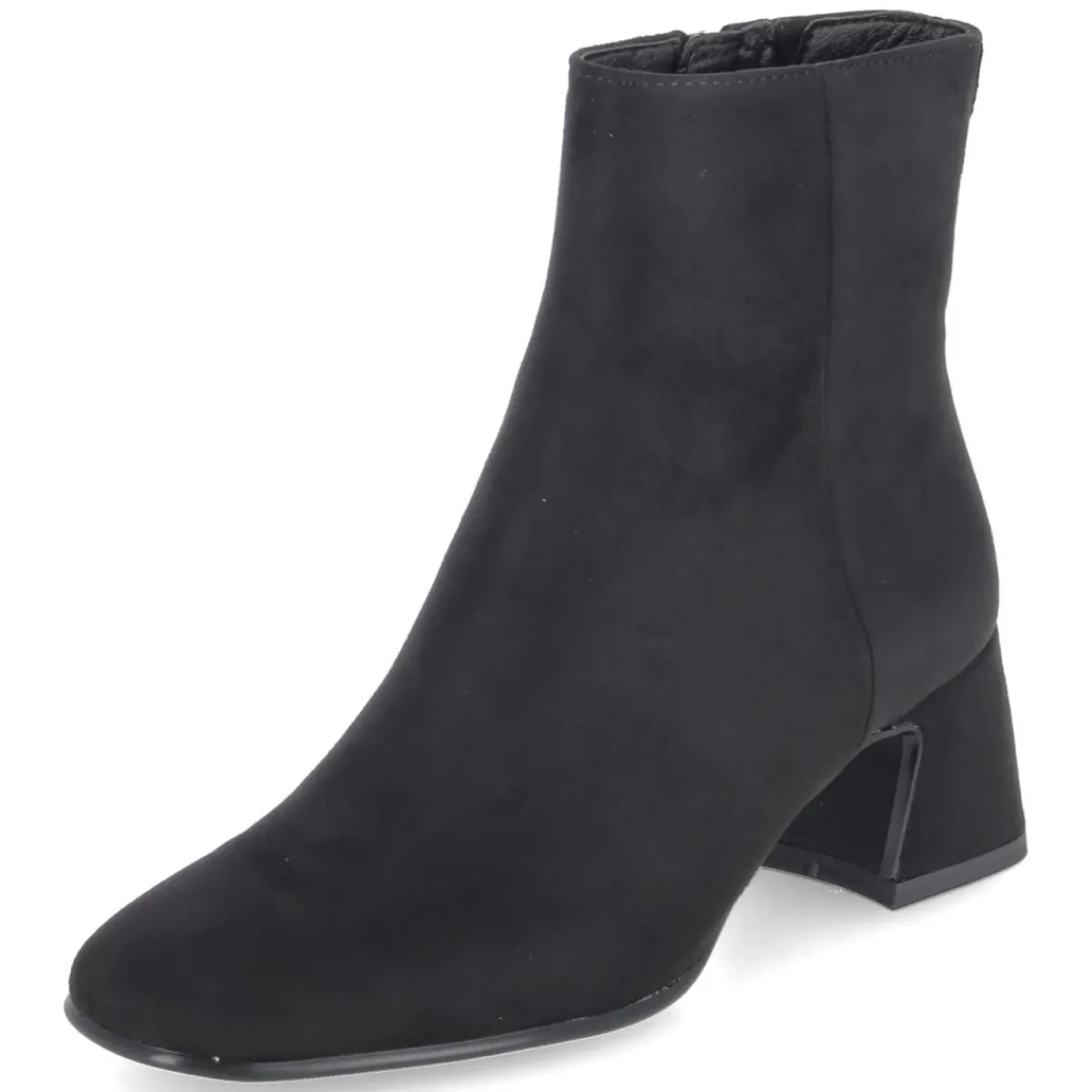 Tamaris präsentiert Ankle Boots in klassischem Schwarz mit rundem Leisten und 6 cm hohem Blockabsatz für souveränen Stand im Alltag und abends. Das textile Obermaterial zeigt eine samtige Oberfläche, der seitliche Reißverschluss mit kleinem Elastikeinsatz am Schaft erleichtert den Einstieg und sorgt für Komfort in Bewegung. Innen punktet eine textile Decksohle, das gepolsterte Fußbett federt Schritte weich ab, während die flexible Laufsohle zuverlässigen Grip bietet. Das vegane Materialkonzept überzeugt ebenso wie das zeitlose Design, das mühelos Business- und Casual-Looks begleitet. Der Schnitt fällt normal aus und richtet sich an erwachsene Trägerinnen. Modetipp: Besonders elegant wirkt das Modell zu Midikleid aus Satinstoff und Oversize-Blazer, dazu eine strukturierte Schultertasche für einen modernen City-Look.
