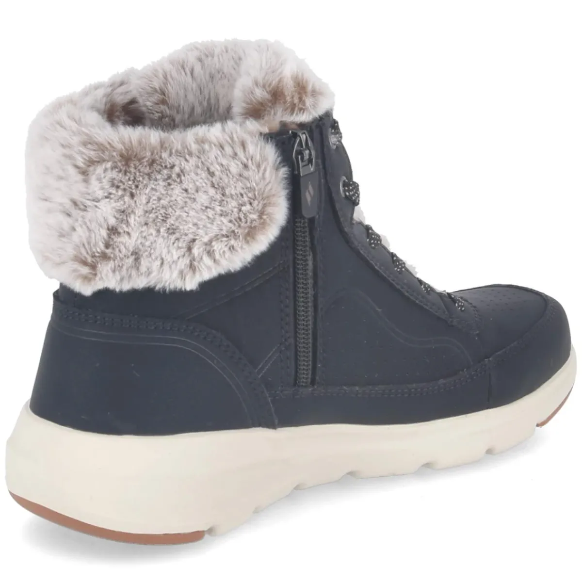 Der Skechers Boots GLACIAL ULTRA in klassischem Schwarz liefert wintertauglichen Komfort und stylische Funktion. Das robuste Obermaterial aus Synthetik ist mit SCOTCHGARD Wasserschutz ausgerüstet, wirkt wasserfest und wasserabweisend und bleibt zugleich angenehm atmungsaktiv. Warmfutter mit Teilen aus weichem Kunstfell umschließt den Fuß gemütlich, während die textile Decksohle ein wohliges Tragegefühl schafft. Ein verstärkter Fußrahmen stabilisiert, die flexible, rutschfeste Laufsohle gibt Halt auf glatten Wegen. Schnürsenkel und seitlicher Reißverschluss ermöglichen unkompliziertes An- und Ausziehen und einen sicheren Sitz; die runde Spitze unterstreicht den relaxten Look. Das relaxtes Leichtgewicht fällt normal aus und eignet sich für kalte Tage im Alltag und für kleine Outdoor-Abenteuer. Modetipp: Mit gesteppter Longjacke, Grobstrickpullover und schmalen Jeans kombinieren, dazu Wollmütze in Ton-in-Ton-Schwarz für einen urbanen Winter-Look.