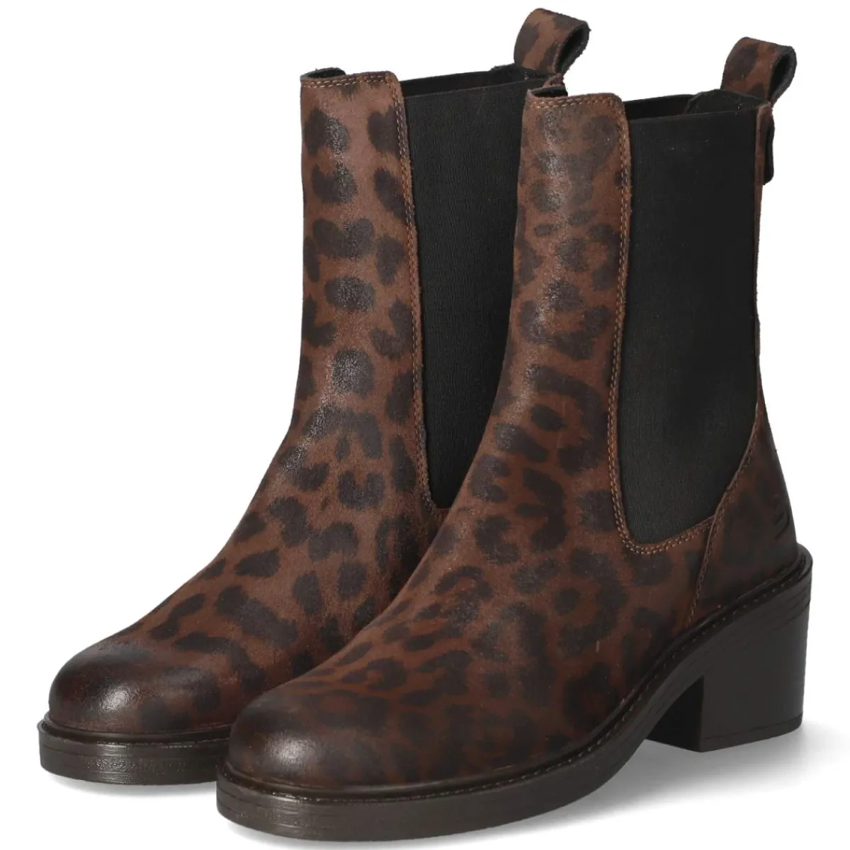 Der Chelsea Boot von Bullboxer vereint urbane Eleganz und Komfort. Braunes Rauleder mit dezenten Ziernähten trifft auf einen markanten Leoparden Print, während seitliche Elastikeinsätze und Anziehlasche den Einstieg erleichtern. Der 6 cm hohe Blockabsatz sorgt für eine feminine Silhouette mit sicherem Stand, unterstützt von einer rutschfesten Laufsohle. Eine textile und synthetische Decksohle sowie das gepolsterte Fußbett bieten angenehme Dämpfung im Alltag. Die runde Schuhspitze und der verstärkte Fersenbereich erhöhen die Langlebigkeit des Echtleders. Fällt größengetreu aus und passt dank seitlichem Markendetail stilvoll zu vielen Looks. Modetipp: Zu Cropped-Jeans und Oversize-Blazer kombinieren, damit der Animal Print als dezenter Eyecatcher wirkt.