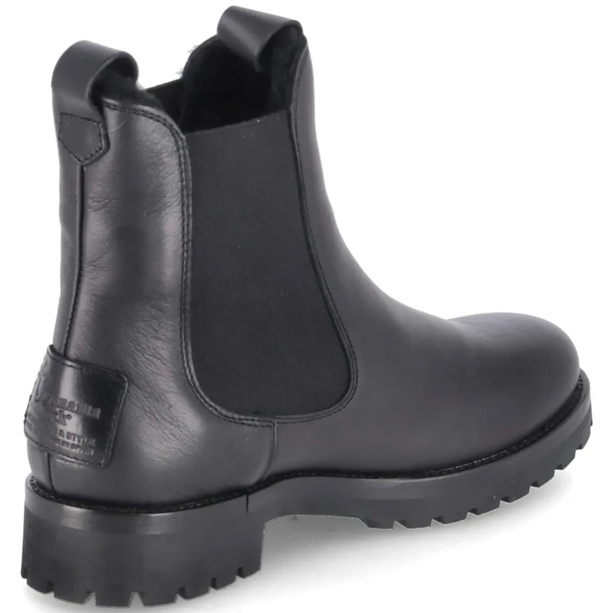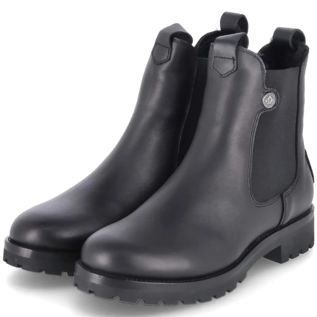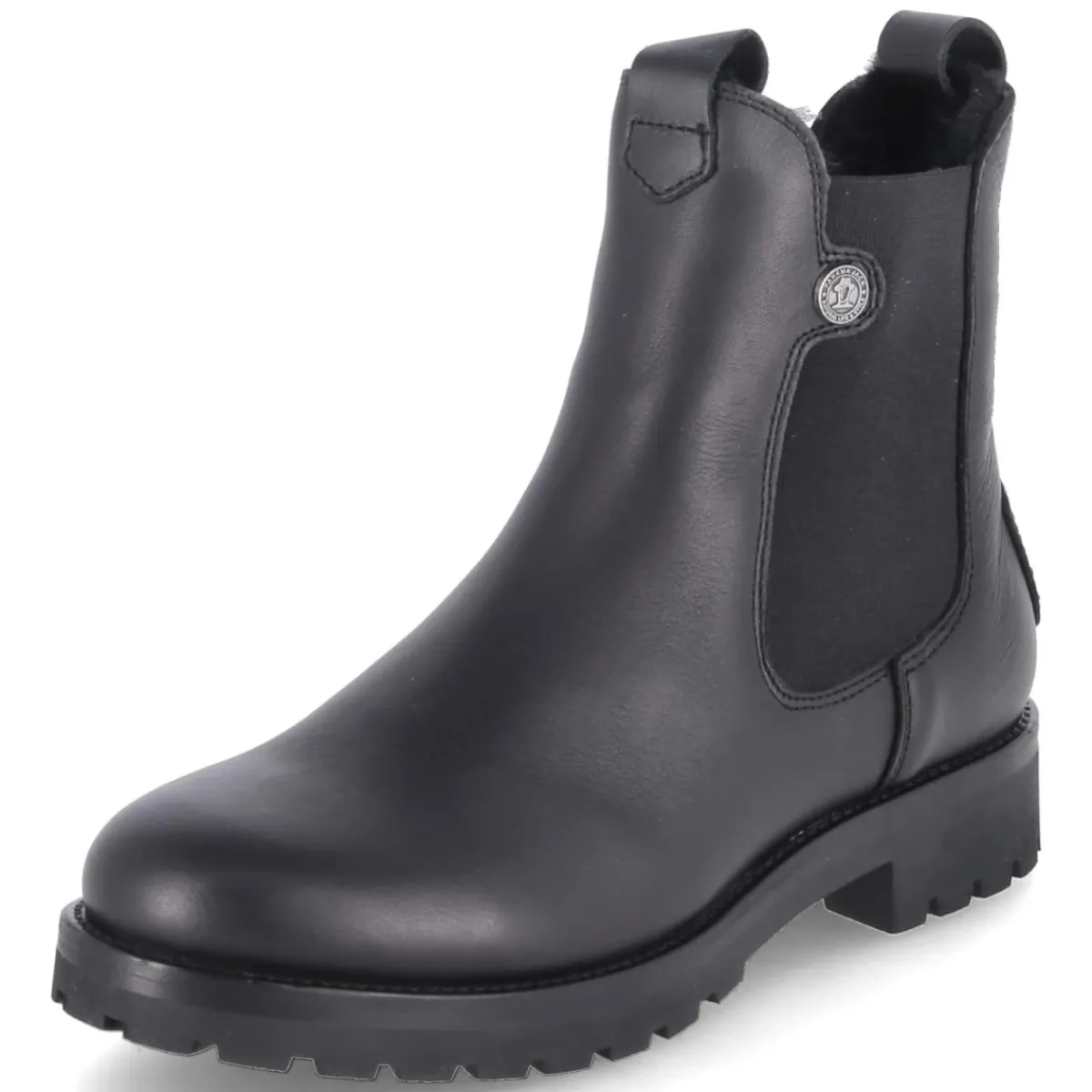 Der Chelsea-Boot FRANCESCA IGLOO von Panama Jack verbindet wetterfeste Funktion und zeitlose Ästhetik. Schwarzes Glattleder, runde Kappe und 4 cm hoher Blockabsatz formen eine klassische Silhouette, die dank stretchigem Einstieg, seitlichen Elastikeinsätzen und zwei Anziehlaschen komfortabel in den Tag startet. Warmes Lammfellfutter trifft auf atmungsaktive Verarbeitung, die Lederdecksohle und das herausnehmbare Fußbett sorgen für ein angenehmes Klima. Die flexible, vernähte und rutschhemmende Profilsohle bietet Halt auf nassem Untergrund, während der verstärkte Fersenbereich mit Markenpatch die robuste Note betont. Wasserfest und zugleich dezent, passt das Modell zu vielen Looks und fällt größengetreu aus. Modetipp: Für einen modernen Kontrast den Boot zu Midirock aus Strick und Oversize-Wollmantel kombinieren; alternativ verleiht eine gerade, leicht verkürzte Jeans dem klassischen Design lässige Präsenz.