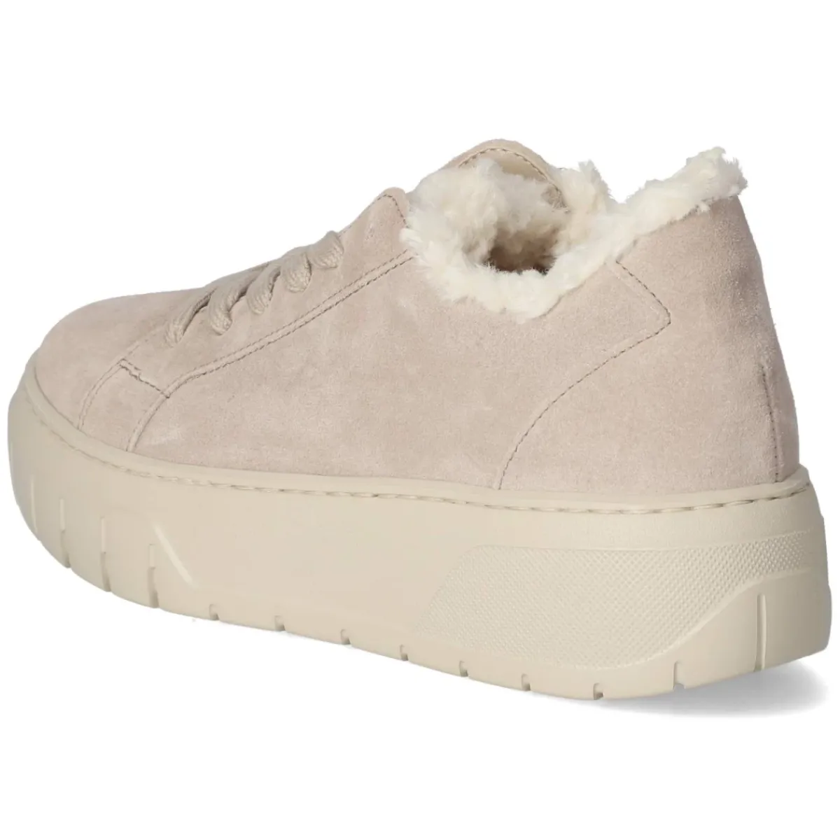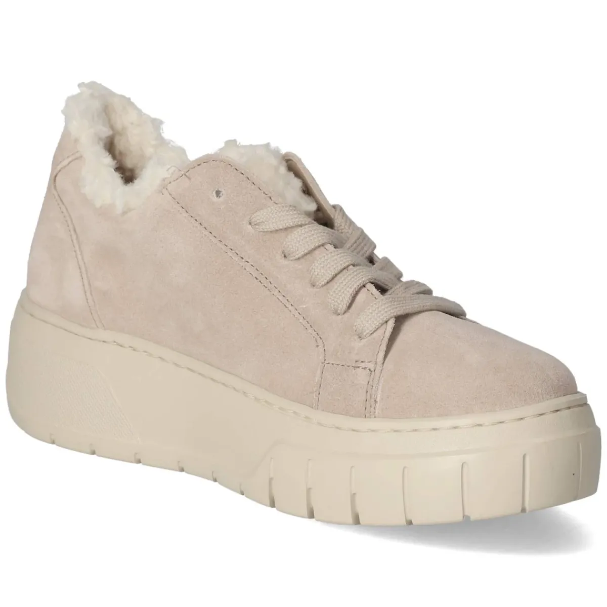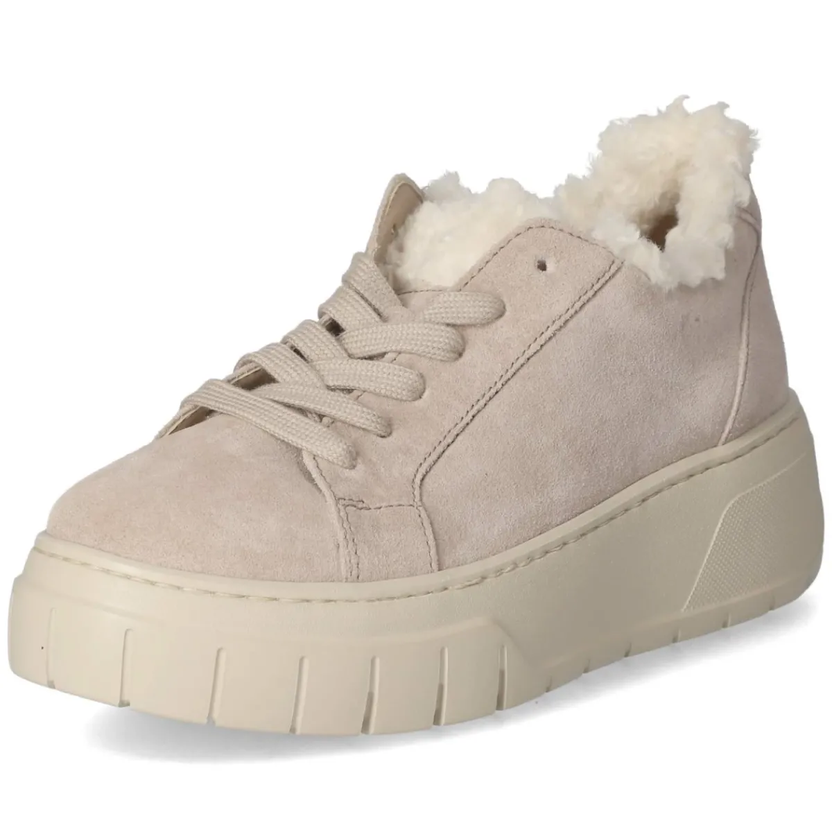 Der Low Sneaker von Gabor in Beige setzt auf eleganten Casual-Charme und abgestimmten Komfort. Weiches Rauleder als Obermaterial und robustes Echtleder verleihen Wertigkeit, die runde Schuhspitze wirkt zeitlos. Der 5 cm hohe Plateau-Absatz streckt subtil, ohne an Bequemlichkeit einzubüßen. Ein komfortables, herausnehmbares Wechselfußbett und die lederne Decksohle sorgen für ein angenehmes Fußklima im Alltag. Schnürsenkel erlauben die eigene Anpassung, während verstärkte Ferse sowie Einstieg und Zunge im Felldesign sanften Halt und ein softes Tragegefühl geben. Die rutschhemmende Laufsohle liefert Stabilität auf urbanen Wegen. Für Damen konzipiert und in der Passform verlässlich, da der Sneaker normal ausfällt, wird der Schuh zum vielseitigen Begleiter vom Büro bis Freizeit. Modetipp: Beige harmoniert besonders schön mit Creme- und Greigetönen; ein weiter Wollmantel und Cropped-Jeans unterstreichen den edel-sportiven Look.