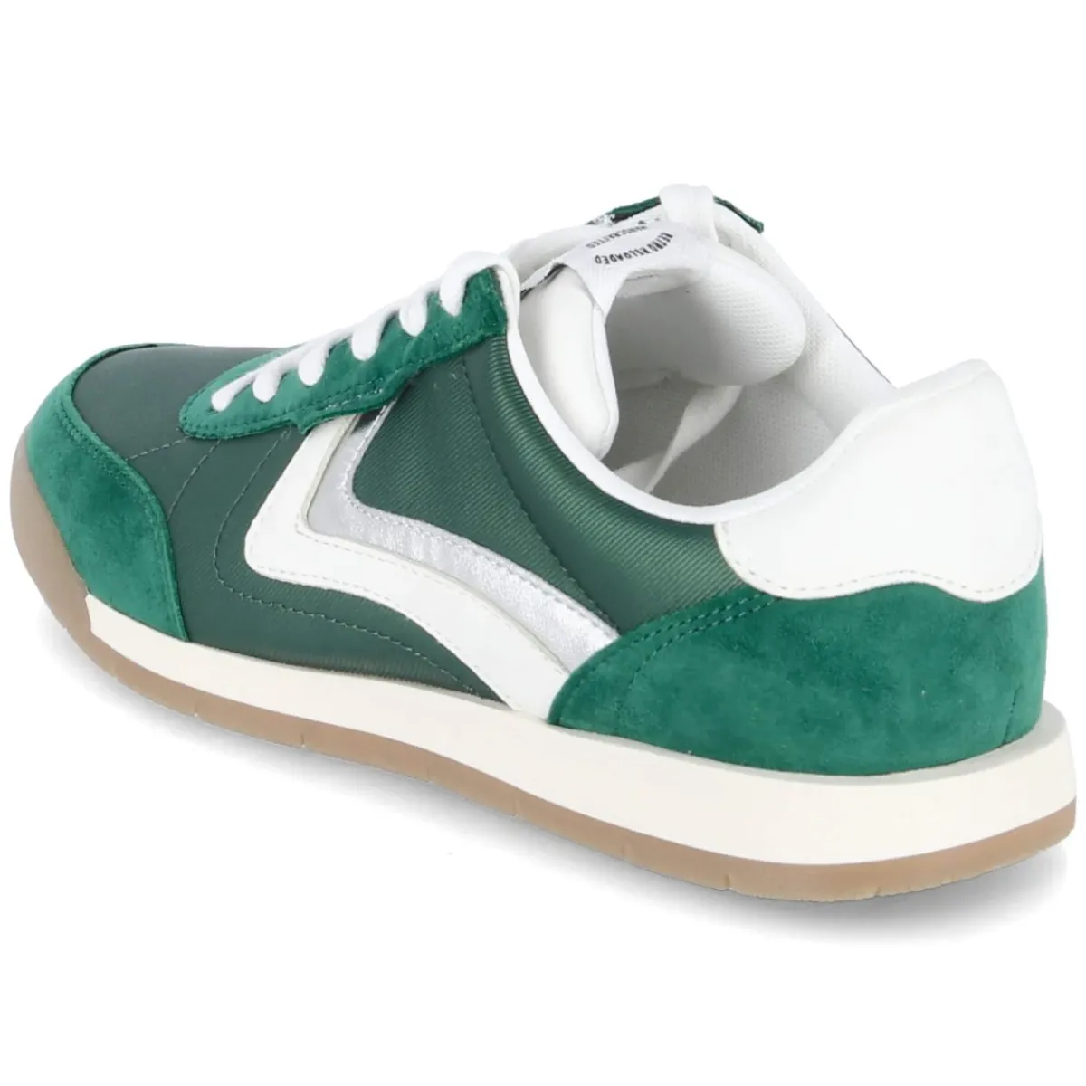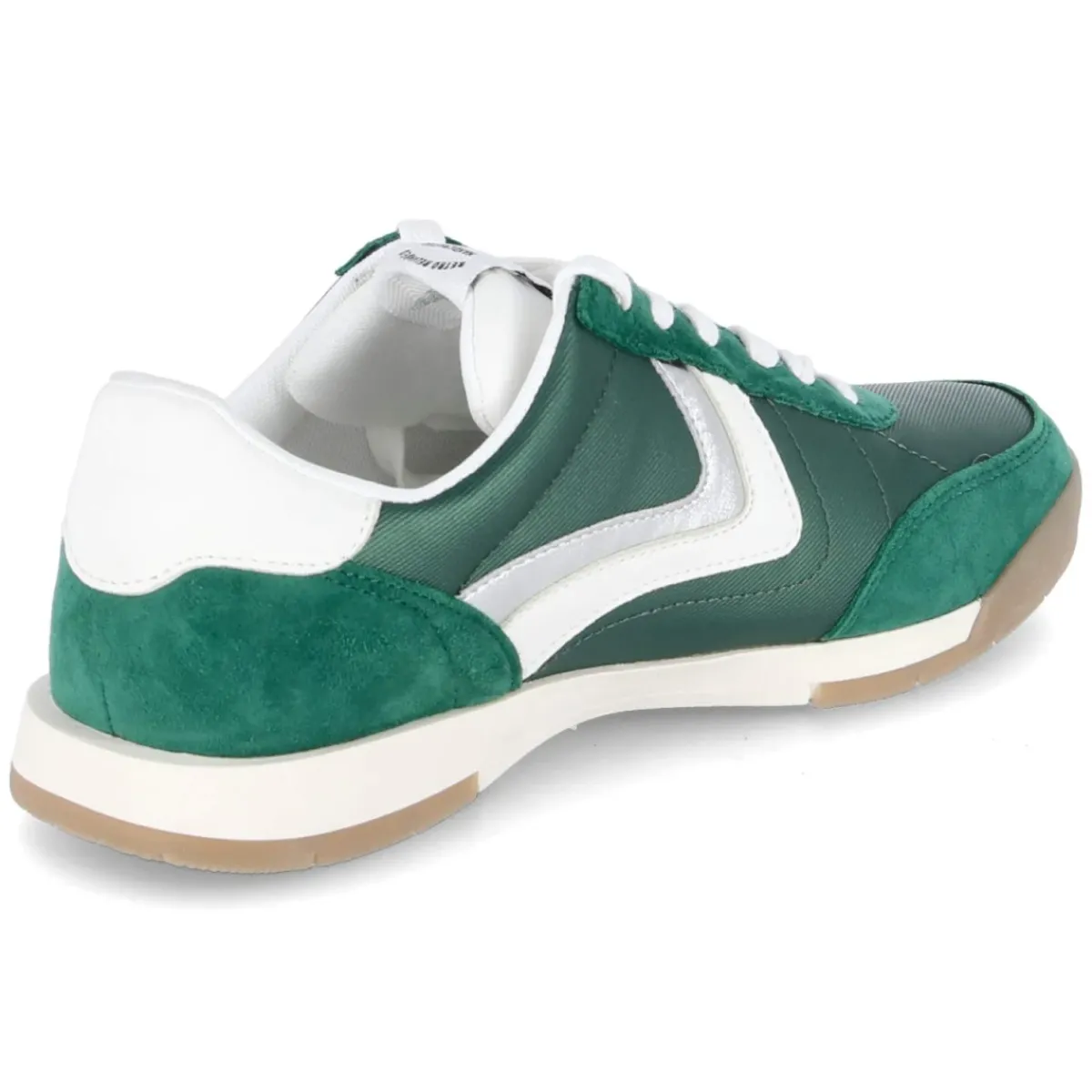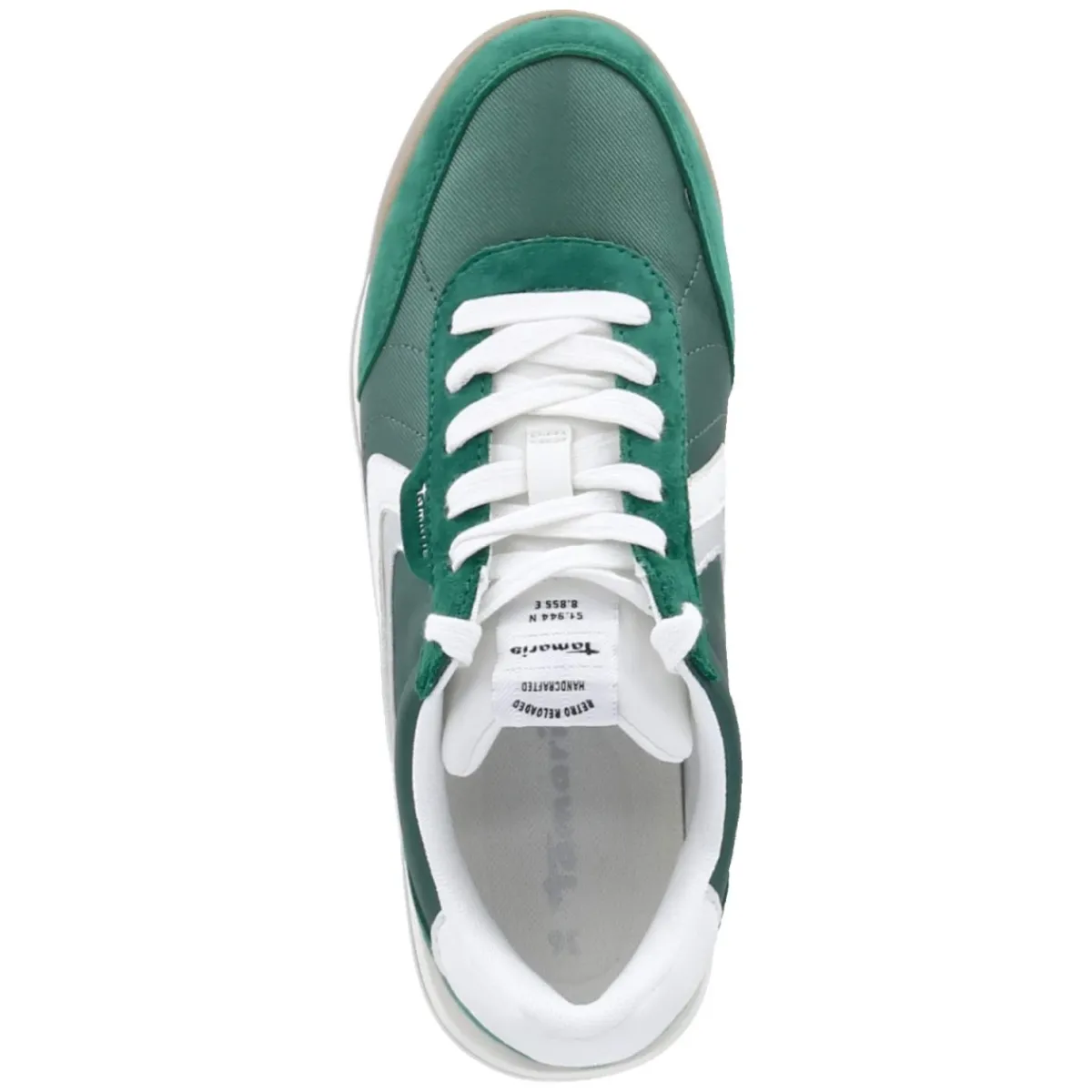 Der Low Sneaker von Tamaris kombiniert sportlichen Minimalismus mit durchdachter Funktion. Das Obermaterial aus Leder und Synthetik ergibt einen robusten Material-Mix, der dank verstärkter Fersen- und Zehenpartie Formstabilität bietet. Eine weiche, atmungsaktive Textildecksohle und der gepolsterte Einstieg sorgen für langanhaltenden Komfort, während das komfortable Wechselfußbett individuellen Ansprüchen entgegenkommt und sich bei Bedarf austauschen lässt. Die flexible, rutschfeste Laufsohle verleiht sicheren Grip im Alltag, das relaxt leichte Tragegefühl macht jedes Schrittbild mühelos. Mit runder Kappe, klassischer Schnürung und weißen Seitenstreifen erhält der grüne Sneaker einen frischen Retro-Twist und fällt größengetreu aus. Modetipp: Zu verkürzten Jeans und einem cremefarbenen Stricktop wirkt das Grün besonders modern; weiße Accessoires greifen die Streifen auf und runden den Look ab.