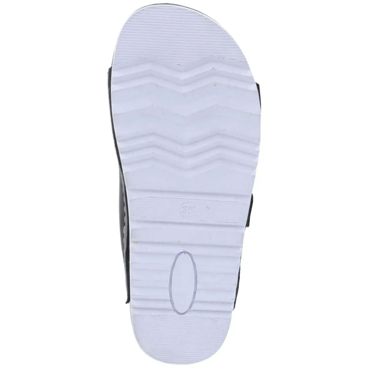 Diese Pantoletten von Andrea Conti verbinden reduziertes Design und hohen Tragekomfort. Das Obermaterial aus langlebigem Echtleder zeigt sich in zeitlosem Schwarz und wird von zwei Riemen mit Schnalle getragen, deren Elastikeinsatz sanft nachgibt und so passgenauen Halt schenkt. Die offene Zehenpartie wirkt luftig, das weiche Lederfutter und die hautfreundliche Lederdecksohle schmiegen sich angenehm an. Ein gepolstertes Lederfußbett entlastet bei jedem Schritt, während die flexible Laufsohle mit leichtem Profil für ein natürliches Abrollen sorgt. Der Schnitt fällt normal aus und macht die Wahl der gewohnten Größe unkompliziert. Modetipp: Zu luftigen Leinenhosen und einer kastigen Bluse entsteht ein moderner Sommerlook; eine schwarze Crossbody-Bag und filigraner Schmuck greifen die elegante Schlichtheit des Modells souverän auf.