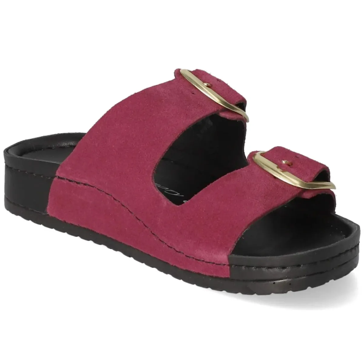 Die Pantoletten von Mubb vereinen ein klassisches Design mit modernem Komfort in einem frischen Lilaton. Obermaterial aus hochwertigem Rauleder und eine robuste Verarbeitung aus Echtleder sorgen für langlebige Qualität, während die offene Schuhspitze und die flexible Sohle luftige Leichtigkeit in warmen Momenten bringen. Zwei sichere, verstellbare Schnallen mit dezenten goldfarbenen Akzenten gewährleisten stabilen Halt. Die lederne Decksohle und das vorgeformte, weich gepolsterte Fußbett unterstützen den Fuß bei jedem Schritt. Das Modell fällt normal aus und eignet sich für Damen, die einen unkomplizierten Begleiter für Alltag, City oder Urlaub schätzen. Die Mischung aus Zurückhaltung und Raffinesse macht diese Pantoletten zum vielseitigen Essential, das sowohl zu entspannten als auch zu gepflegten Looks passt. Modetipp: Harmonisch zu hellen Leinenhosen und einem weißen Oversize-Hemd, abgerundet mit zartem Goldschmuck, der die Metallakzente aufgreift.