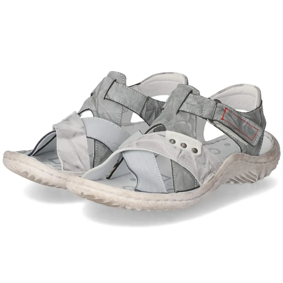 Diese Damen-Sandalen von Krisbut setzen auf reduziertes Design und hochwertigen Komfort. Das Obermaterial aus robustem Glattleder zeigt sich in einem vielseitigen Grauton, der sowohl casual als auch elegant kombiniert werden kann. Langlebiges Echtleder und eine hautfreundliche Lederdecksohle sorgen für ein angenehmes Klima am Fuß, während die runde Schuhspitze natürlichen Zehenfreiraum bietet. Der bequeme Klettverschluss erlaubt individuelles Anpassen und schnellen Einstieg. Als zuverlässiger Begleiter für Erwachsene konzipiert, überzeugt das Modell im Alltag ebenso wie auf Reisen. Der Größenhinweis fällt normal aus, wodurch die Wahl der gewohnten Größe empfohlen ist. Modetipp: Zu einem Leinenkleid in Naturtönen und einer strukturierten Basttasche entsteht ein moderner Sommerlook, der das kühle Grau elegant in Szene setzt.