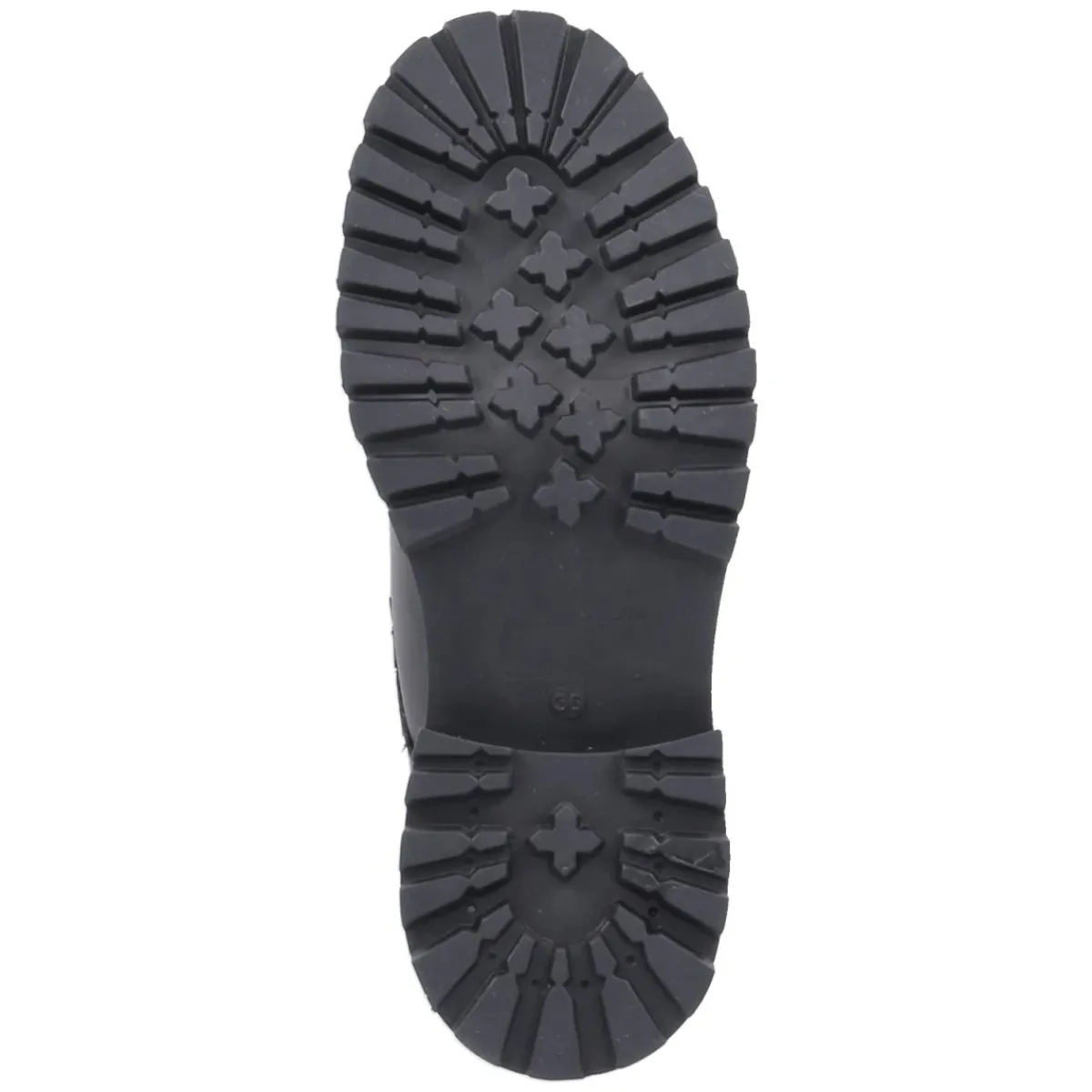 Das Modell Schnürboots von Fräulein Frida bringt klassisches Design und wintertauglichen Komfort in Einklang. Schwarzes Glattleder in robuster Qualität trifft auf eine runde Silhouette und einen stabilen Blockabsatz von 3,5 cm, der zusammen mit der rutschfesten Profilsohle sicheren Halt auf nassem Pflaster bietet. Das kuschelige Warmfutter mit Teddy-Charakter umschließt den Fuß angenehm, die textile Decksohle und das gepolsterte Fußbett sorgen für weiche Dämpfung auf langen Wegen. Dank Kombination aus Schnürung und seitlichem Reißverschluss lässt sich die Passform präzise regulieren und dennoch schnell an- und ausziehen. Der verstärkte Fersenbereich erhöht die Langlebigkeit im Alltag, die Passform fällt normal aus. Modetipp: Zu schwarzem Wollmantel und geradem Raw-Denim entsteht ein cleaner City-Look, kleine Wollsocken dürfen sichtbar blitzen.