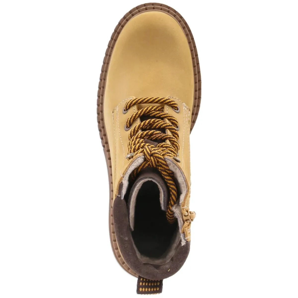 Schnürstiefeletten von Tamaris in leuchtendem Gelb setzen ein modernes Statement und verbinden Komfort mit robustem Charakter. Langlebiges Echtleder trifft auf runde Schuhspitze und einen standfesten Blockabsatz von 7,5 cm, der die Silhouette streckt und zugleich Stabilität bietet. Die Kombination aus Schnürsenkeln und praktischem Reißverschluss ermöglicht individuelles Anpassen und schnelles Hineinschlüpfen. Ein leichtes Futter wärmt an kühlen Tagen, während gepolsterter Einstieg, verstärkter Fersenbereich und ein komfortables, gepolstertes Fußbett mit textiler Decksohle den Tragekomfort steigern. Der Schaft misst ca. 15 cm in der Höhe und ca. 22 cm im Umfang; die rutschfeste Profilsohle sorgt für Halt auf urbanen Wegen. Der Größenhinweis fällt normal aus. Modetipp: Mit Straight-Leg-Jeans in Mid-Blue, cremefarbenem Strick und kamelfarbenem Mantel entsteht ein eleganter City-Look mit Farb-Akzent.