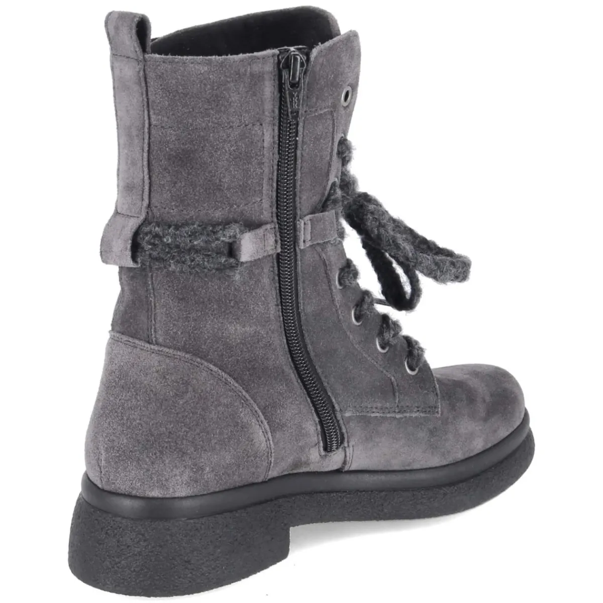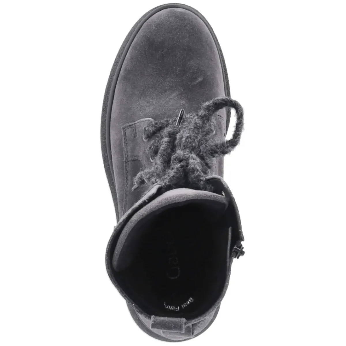 Die grauen Schnürstiefeletten von Gabor verbinden zeitlosen Stil mit verlässlichem Komfort. Das Obermaterial aus hochwertigem Rauleder zeigt eine samtige Oberfläche, die dem klaren Design eine edle Note verleiht. Der 4 cm hohe Blockabsatz sorgt für ein angenehmes Plus an Höhe und bleibt gleichzeitig stabil. Dank flexibler, griffiger Laufsohle ist ein sicherer Auftritt auf verschiedensten Untergründen gegeben. Die Kombination aus Schnürsenkeln und praktischem Reißverschluss ermöglicht einen bequemen Ein- und Ausstieg, unterstützt von Anziehlasche und verstärkter Ferse. Ein weiches Fußbett und eine textile Decksohle stehen für entspanntes Tragen über den ganzen Tag. Mit runder Spitze und normal ausfallender Passform lassen sich die Stiefeletten vielseitig kombinieren – von Büro bis Freizeit. Modetipp: Zu schmaler Jeans, Feinstrickrolli und einem hellen Wollmantel entsteht ein lässig-eleganter City-Look.
