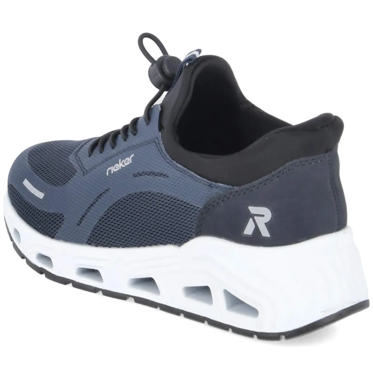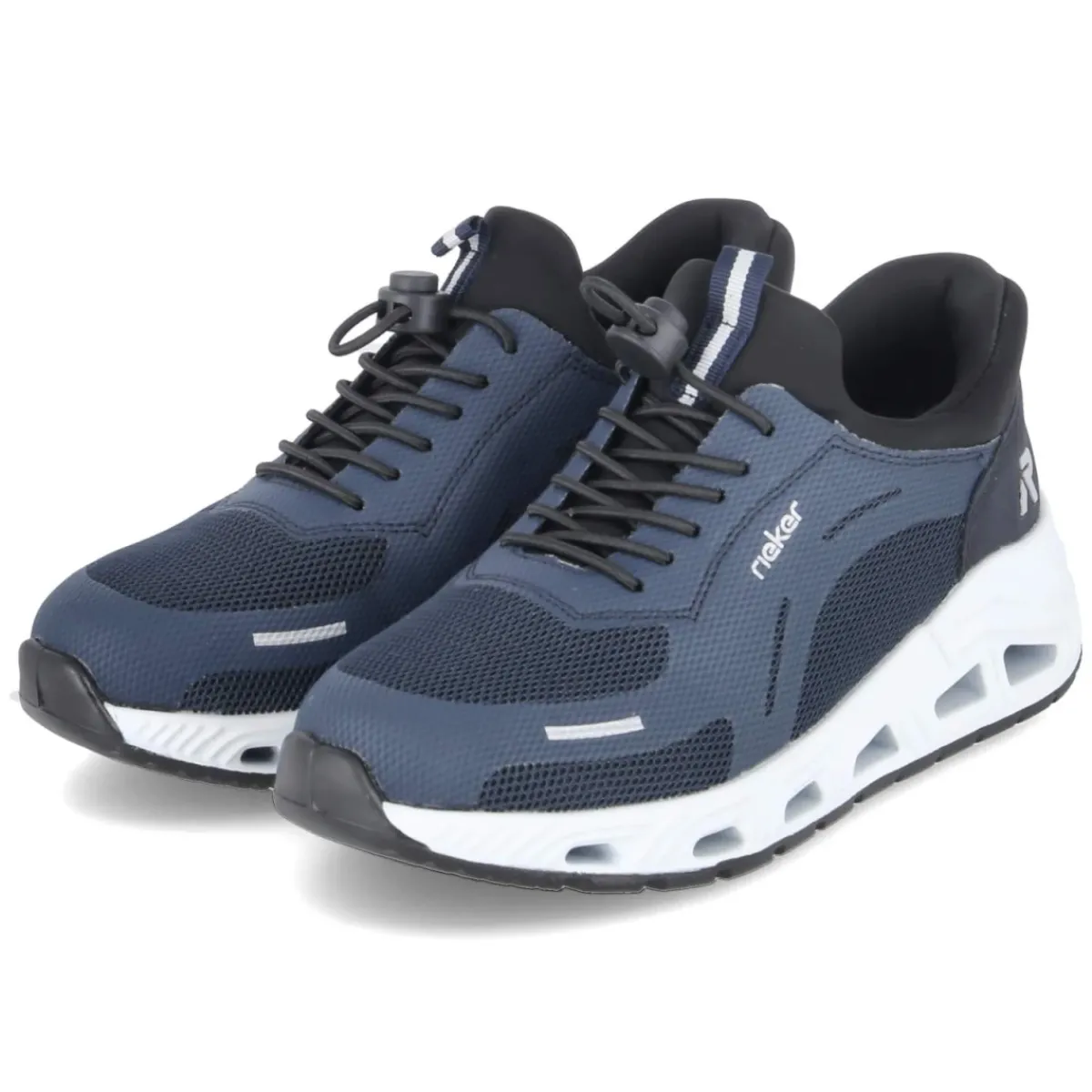 Der Slip-On-Sneaker von Rieker präsentiert sich in dunklem Blau mit reflektierenden Details und punktet als relaxtes Leichtgewicht im Alltag. Das Obermaterial aus Textil und Synthetik umschließt den Fuß angenehm, der gepolsterte Einstieg schont den Knöchel. Dank praktischem Schnellverschluss gelingt das An- und Ausziehen im Handumdrehen, die Anziehlasche unterstützt zusätzlich. Das komfortable Wechselfußbett bietet wahlweise eigene Einlagen, während die flexible Laufsohle mit Luftpolstern weich abfedert. Verstärkte Fersen- und Zehenbereiche erhöhen die Stabilität. Die Passform fällt normal aus und eignet sich für Erwachsene, die Wert auf vegane Materialien legen. Modetipp: Zu cropped Jeans in Indigo, einem weißen Shirt und beige Trench passt der Sneaker als sportiver Kontrast und vervollständigt einen klaren, urbanen Look.