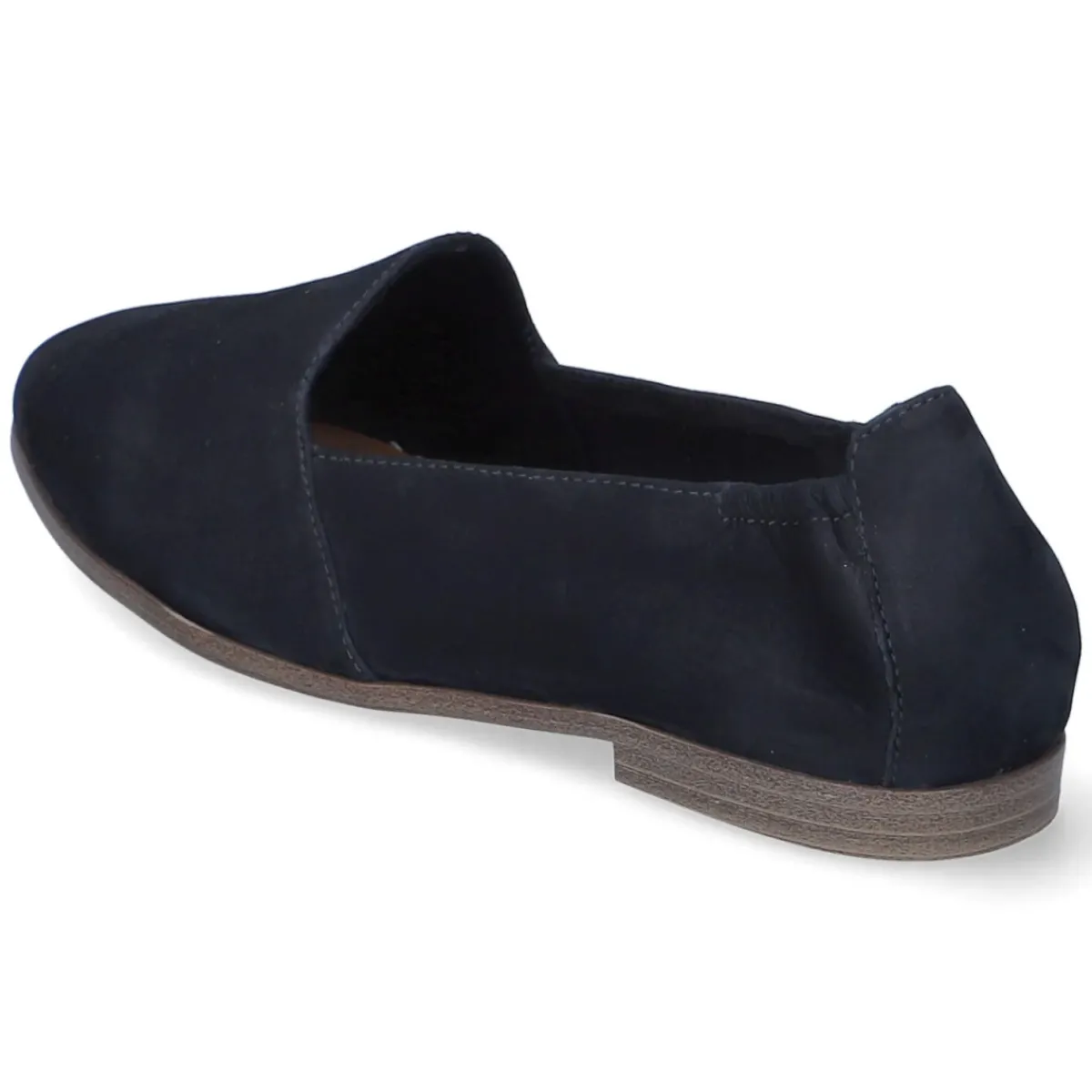 Der Damen-Slipper von Tamaris verbindet modisches Design mit langlebigem Echtleder. Das samtige Rauleder schmiegt sich weich an den Fuß, während die verstärkte Ferse und ein gepolstertes Fußbett zuverlässigen Halt und Komfort schenken. Dank runder Schuhspitze und dem kleinen Blockabsatz in Holzoptik von 1,5 cm entsteht eine feminine, alltagstaugliche Silhouette. Die flexible, rutschhemmende Laufsohle sorgt für sicheren Tritt, die synthetische Decksohle ist leicht gepolstert. Praktisch ohne Verschluss konzipiert, überzeugt das Modell in einem tiefen Blau, das je nach Licht fast Schwarz wirken kann. Hinweis: fällt schmaler aus. Modetipp: Besonders edel zu Cropped-Jeans und feinem Strick in Nachtblau; für den Bürolook mit weißer Bluse und knöchellanger Stoffhose kombinieren und mit einer Ledertasche im Ton des Schuhs abrunden.