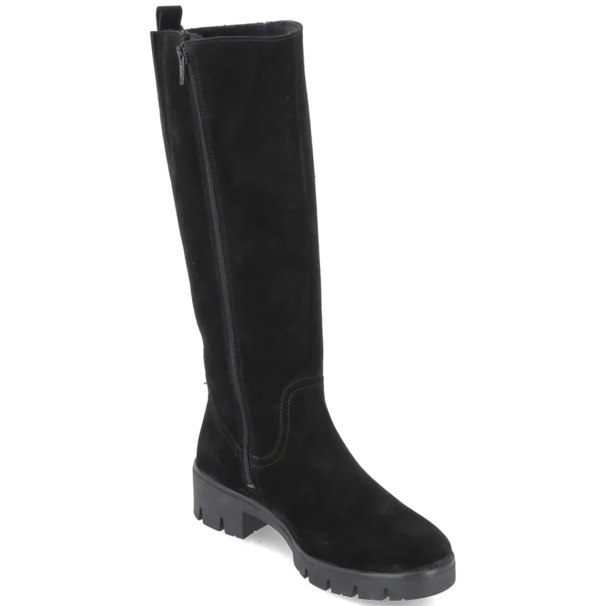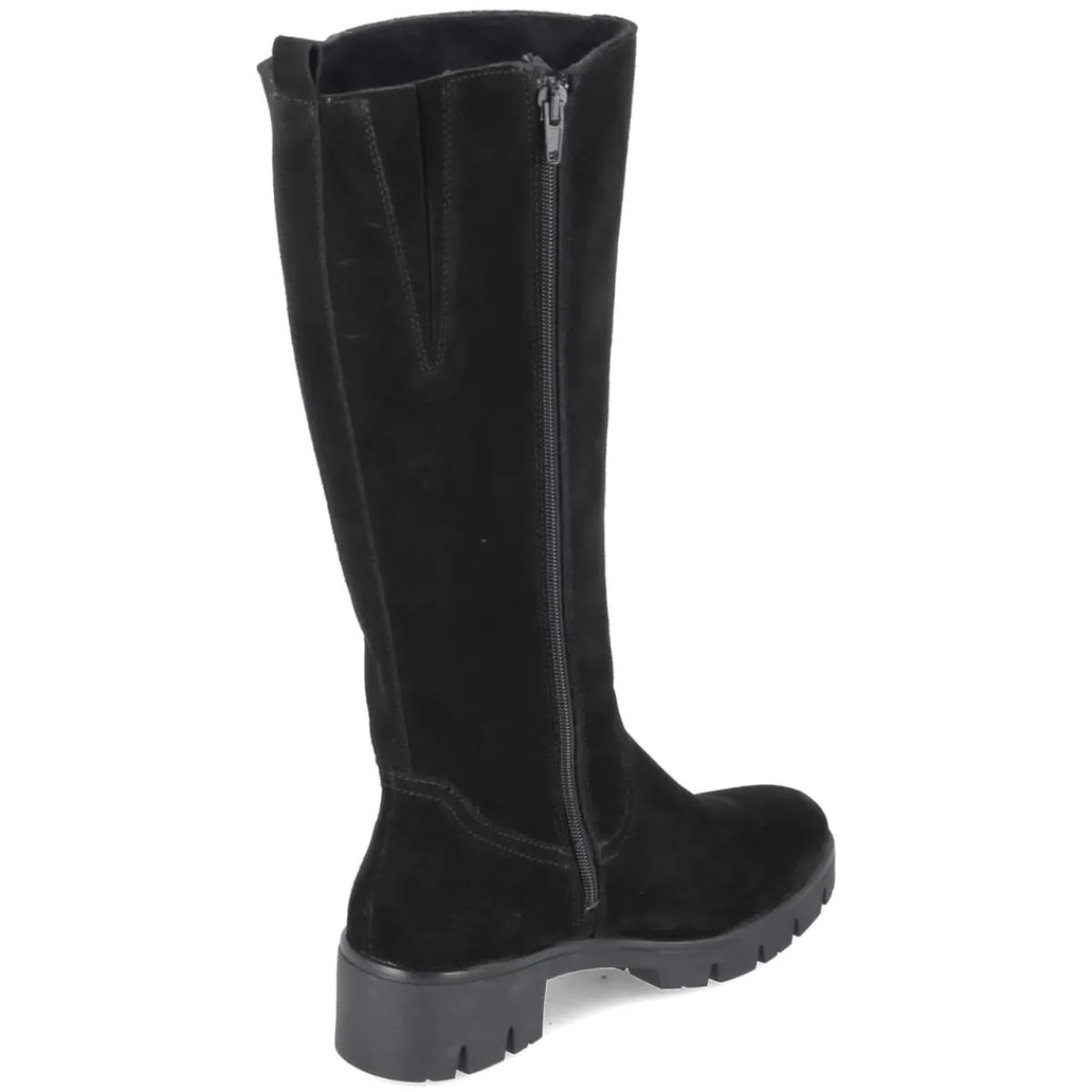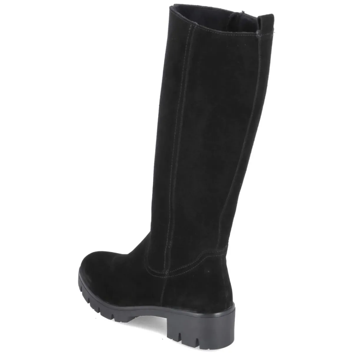 Beliana präsentiert mit dem Modell MOLLY 10 einen schwarzen Damenstiefel aus feinem Rauleder mit langlebigem Echtleder-Charakter. Der 4,5 cm hohe Blockabsatz und die rutschhemmende, sehr flexible Profilsohle sorgen für stabilen Komfort, während die runde Spitze zeitlose Eleganz betont. Ein bequemer Reißverschluss-Einstieg, Anziehlasche und ein kleiner Elastikkeil am oberen Schaft erleichtern das Anziehen und geben zusätzlichen Halt. Das leichte Fleecefutter wärmt an kühlen Tagen, die textile Decksohle mit Wechselfußbett erhöht den Tragekomfort und lässt sich bei Bedarf austauschen. Mit einem Schaft von ca. 34 cm Höhe und 36 cm Umfang sowie schmalerer Passform fällt das Modell feminin und formschön aus. Modetipp: Zu Midikleid und Wollmantel entsteht ein cleaner Look; ein schmaler Gürtel in Schwarz harmoniert perfekt.