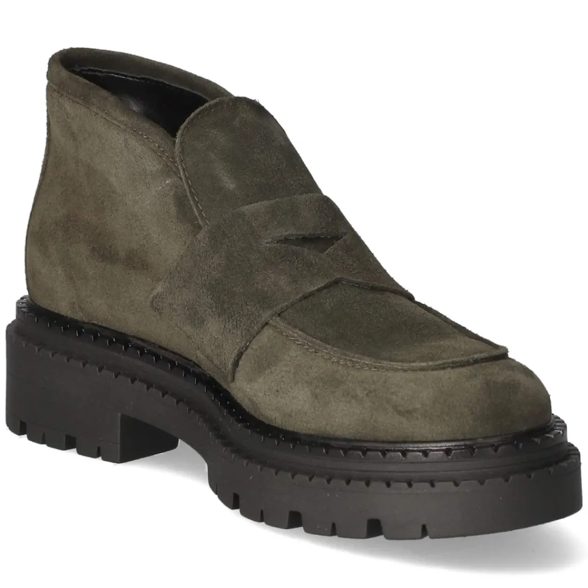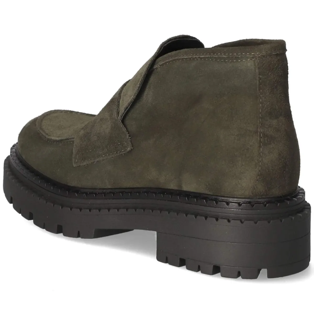 Die Stiefeletten CARLA 2 von Kaerlek verbinden zeitloses Design mit durchdachter Funktion. Das grüne Obermaterial aus hochwertigem Rauleder und die langlebige Echtlederverarbeitung prägen den eleganten Look, während das weiche Lederfutter und die lederne Decksohle für ein angenehmes Fußklima sorgen. Der unkomplizierte Einstieg gelingt dank Elastikeinsatz auch ohne Verschluss mühelos. Mit rund zulaufender Spitze, verstärkter Ferse und rutschfester Laufsohle entsteht stabiler Halt im Alltag. Der 4,5 cm hohe Blockabsatz bietet eine komfortable Höhe, die den Fuß entspannt trägt. Dezente Wulstnaht und ein Zierriemen über dem Spann setzen stilvolle Akzente, die das Modell aufwerten. Die reguläre Passform macht die Stiefelette zum vielseitigen Begleiter von früh bis spät. Modetipp: Zur Wide-Leg-Jeans und einem kurz geschnittenen Wollblazer kombinieren, dazu ein feiner Gürtel in Cognac als warmer Kontrast zum Grün.