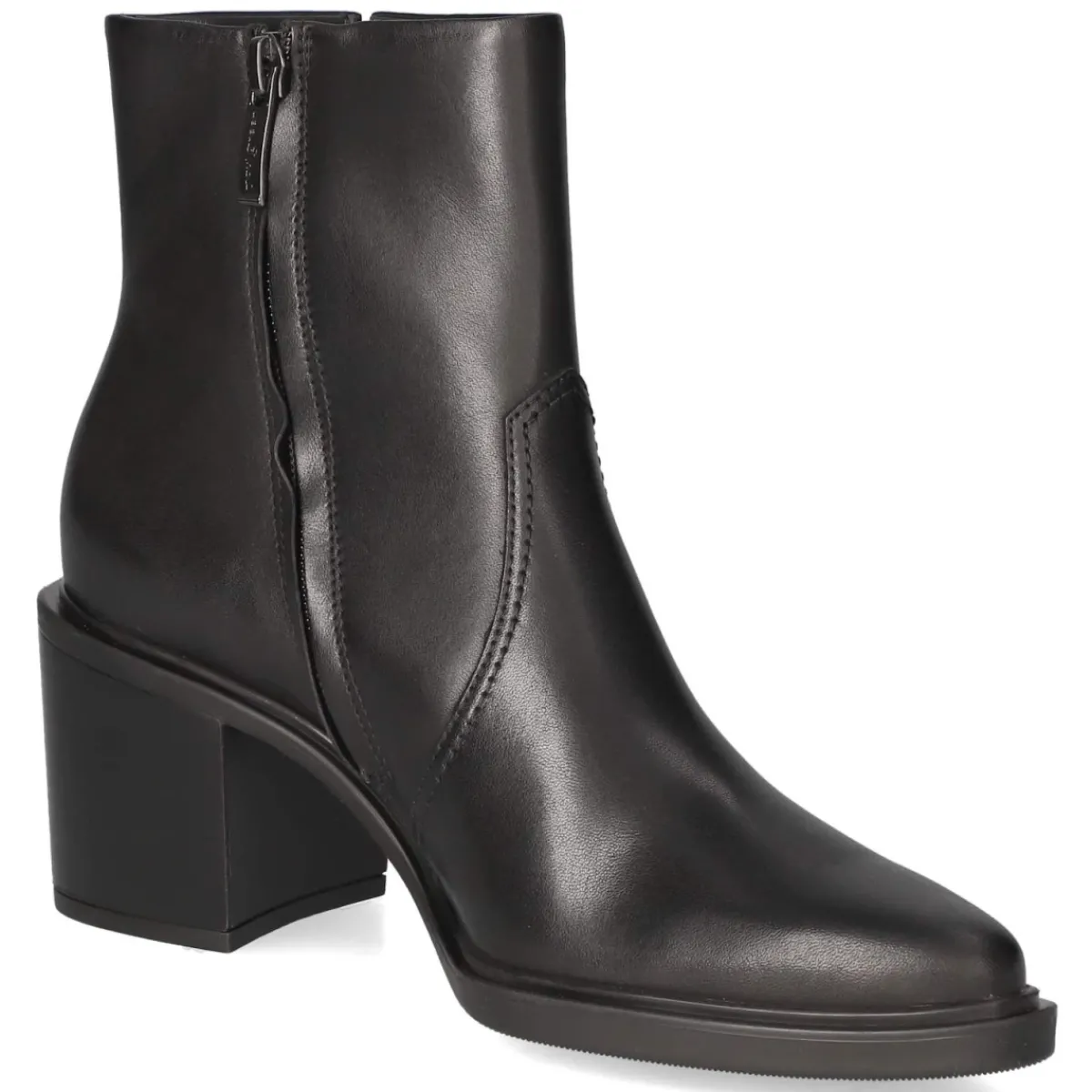 Diese Damen-Stiefeletten von Paul Green verbinden klare Linien mit feinster Materialwahl. Glattes, langlebiges Echtleder in klassischem Schwarz trifft auf eine spitze Schuhspitze, die den Fuß elegant streckt. Der 6,5 cm hohe Blockabsatz bietet einen stabilen Auftritt, während der bequeme Reißverschlusseinstieg das An- und Ausziehen erleichtert. Eine hautfreundliche Lederdecksohle sorgt für ein angenehmes Fußklima, die verstärkte Ferse für zuverlässigen Halt. Die doppelte Ziernaht über dem Spann betont die hochwertige Verarbeitung, die flexible, rutschhemmende Sohle unterstützt sicheren Tritt im Alltag. Als klassisches Modell fällt es größengetreu aus und begleitet stilsicher vom Büro bis zum Dinner. Modetipp: Mit schmal geschnittener Anzughose und Oversize-Blazer entsteht ein moderner Look, ein Seidentop darunter bringt zusätzlichen Glanz.
