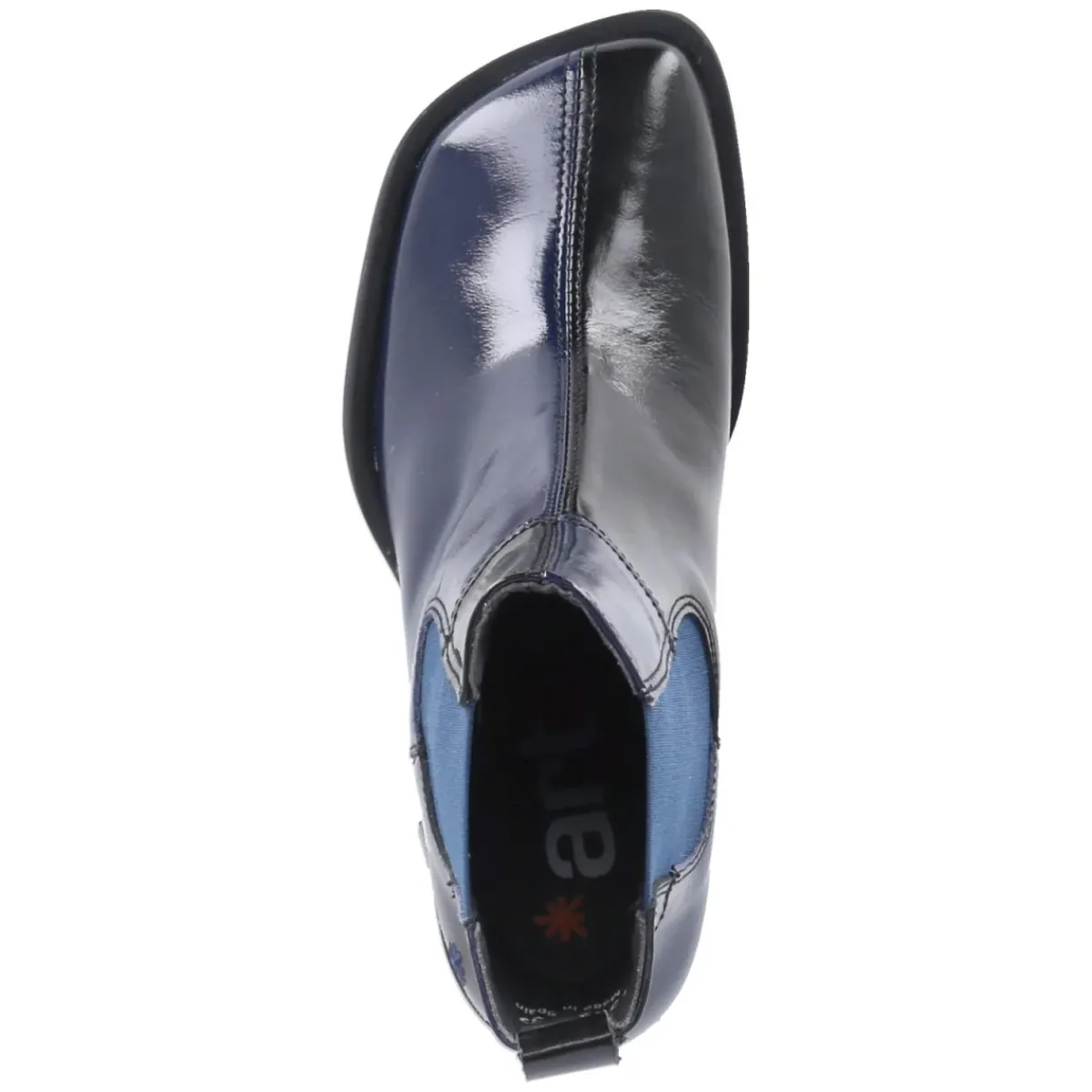 Die Stiefeletten VERONA von Art verbinden eleganten Lackglanz mit markantem blau-schwarzem Karodesign zu einem ausdrucksstarken Statement. Das Obermaterial aus Lackleder verleiht Tiefe und Reflexion, während der 6,5 cm hohe Blockabsatz mühelose Stabilität bietet. Dank beidseitiger Elastikeinsätze und Anziehlasche gelingt das Hineinschlüpfen ohne Verschluss komfortabel und schnell. Die karreeförmige Schuhspitze setzt einen modernen Akzent, die flexible, griffige Laufsohle sorgt für sicheren Halt im urbanen Alltag. Ein gepolstertes, herausnehmbares Fußbett erhöht den Tragekomfort und ermöglicht individuelle Einlagen. Die Passform fällt normal aus und lässt sich vielseitig kombinieren – von Office bis After-Work. Modetipp: Zu Wide-Leg-Denim, dunkelblauem Wollmantel und kobaltblauem Rollkragen entsteht ein souveräner Ton-in-Ton-Look, den ein schmaler Lackgürtel und minimalistische Schmuckstücke präzise abrunden.