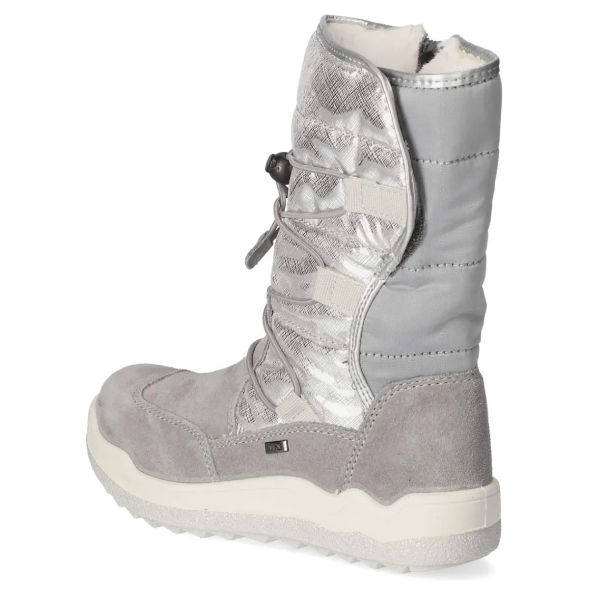 Der Winterstiefel von Imac in zeitlosem Grau begleitet Kinder zuverlässig durch nasse und kalte Tage. Eine Kombination aus robustem Leder und pflegeleichtem Textil gibt dem Obermaterial Halt, während die ImacTEX-Ausstattung Nässe abhält und zugleich atmungsaktive Eigenschaften bewahrt. Das weiche Warmfutter aus Textil hüllt kleine Füße kuschelig ein, die runde Spitze bietet Zehenfreiheit und die flexible, rutschhemmende Profilsohle sorgt auf winterlichen Wegen für sicheren Grip. Ein bequemer Einstieg gelingt über den seitlichen Reißverschluss; Schnellverschluss und Varioschaft mit Klett ermöglichen passgenauen Sitz. Die textile Wechseldecksohle unterstützt mit Wechselfußbett-Funktion und kann bei Bedarf getauscht werden. Der Stiefel fällt normal aus und ist damit unkompliziert in der Größe. Modetipp: Zu Wollmantel in Schiefer, Thermojeans und Strickmütze in Senf entsteht ein harmonischer, urbaner Winterlook.