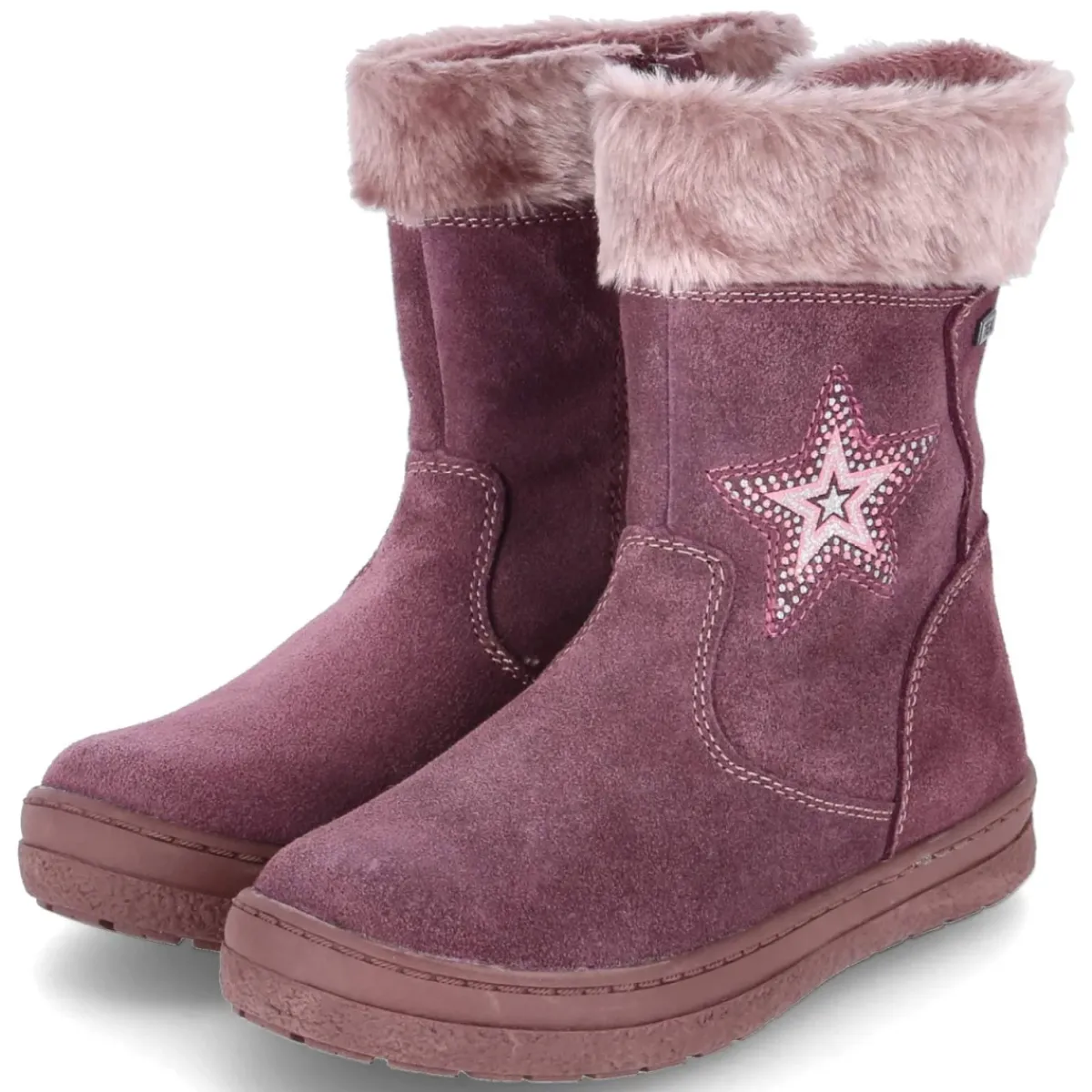 Der Winterstiefel VESNA von Lurchi verbindet kindgerechten Komfort mit robusten Materialien. Das Obermaterial aus Leder und Textil ist wasserfest verarbeitet und zugleich atmungsaktiv, sodass kleine Füße bei Schnee und Matsch angenehm trocken bleiben. Ein warmes Fleecefutter und die weiche Textil-Decksohle sorgen für behagliche Wärme, dabei bleibt das Futter leicht – ideal für kühle Tage. Der bequeme Reißverschlußeinstieg erleichtert das An- und Ausziehen, die runde Schuhspitze und der verstärkte Fersenbereich geben zusätzlichen Schutz. Optische Highlights setzen der glitzernde Stern am Schaft, Ziernähte und der rosa Kunstfellkragen. Für sicheren Tritt sorgt die flexible, vernähte und rutschhemmende Cupsohle. In klassischer Passform gefertigt, fällt das Modell normal aus. Modetipp: zu Steppjacke in Beere, Strickmütze mit Bommel und Thermoleggings in Grau wird der lila Stiefel zum fröhlichen Winter-Statement.