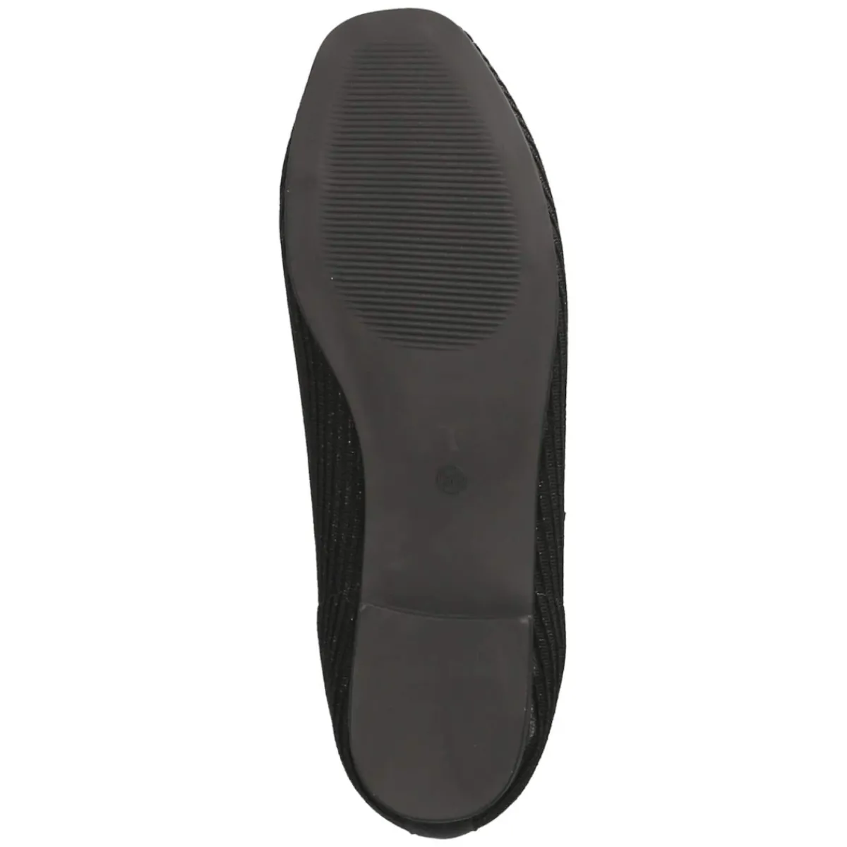 La Strada Ballerinas in Schwarz vereinen feminine Eleganz mit alltagstauglichem Komfort. Das Obermaterial aus Textil zeigt eine feine Cordoptik, die von einem dezent glitzernden Silberfaden durchzogen wird – ein schimmernder Akzent, der den cleanen Look raffiniert aufwertet. Ein Zierriemen mit goldfarbener Schnalle setzt einen edlen Kontrast und ergänzt die praktische Schnalle, die sicheren Halt verspricht. Die runde Spitze wirkt klassisch und schmeichelt dem Fuß, während die verstärkte Ferse Stabilität gibt. Für langes Tragen sorgt das weich gepolsterte Fußbett mit textiler Decksohle, die flexible, rutschhemmende Laufsohle unterstützt einen souveränen Auftritt. Der Schnitt fällt größengetreu aus und eignet sich für den unkomplizierten Einsatz vom Büro bis zum Dinner. Modetipp: Zu Cropped-Jeans und schwarzem Blazer tragen, dazu eine goldene Armspange aufgreifen – so strahlt der feine Glitzer noch stilvoller.