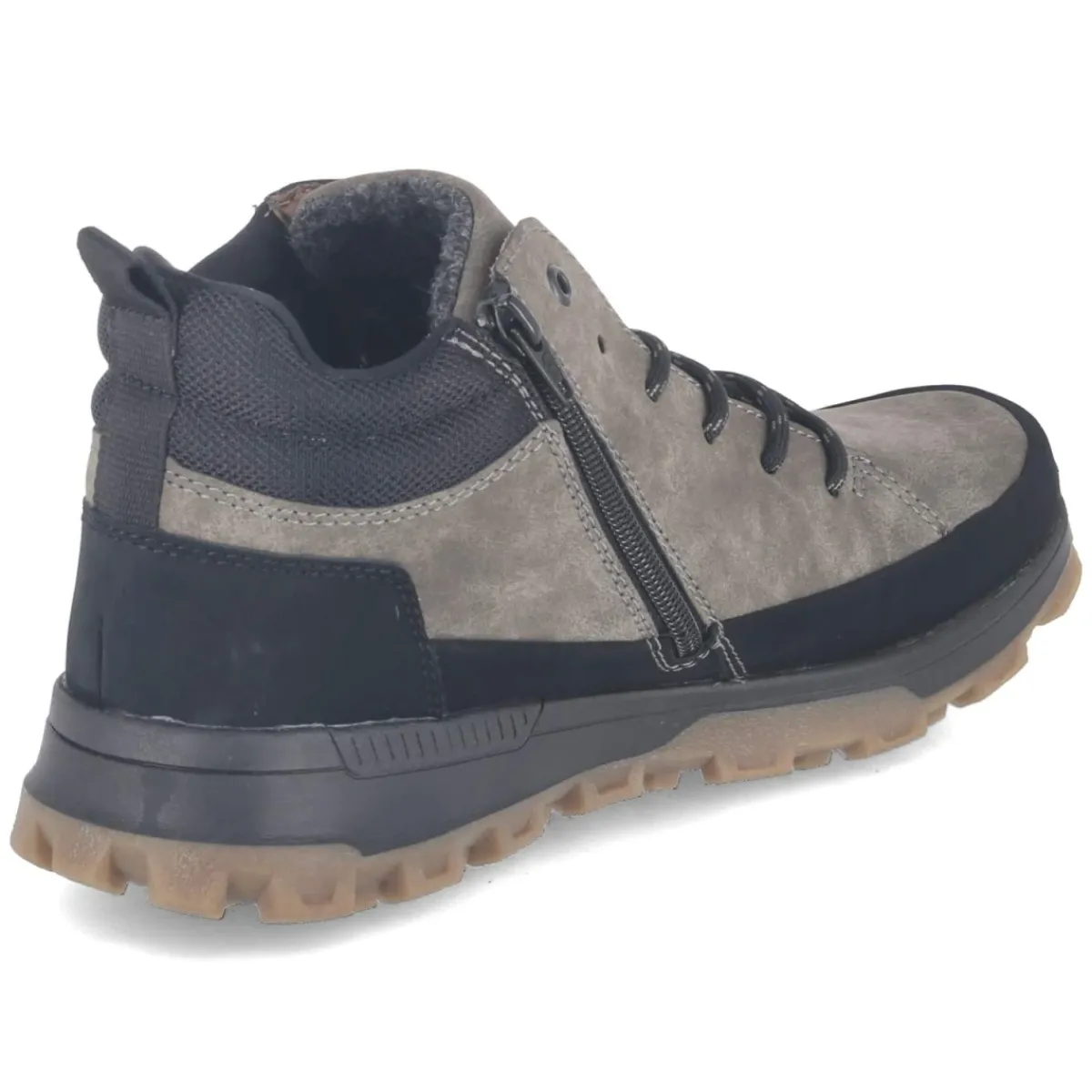 Der Herren-Boot von Rieker setzt auf zuverlässige Performance bei wechselhaftem Wetter. Das synthetische Obermaterial präsentiert einen natürlichen Look in Braun, der je nach Licht von Grau bis leicht Grün schimmert, während schwarze Elemente einen markanten Kontrast bilden. Schnürsenkel und seitlicher Reißverschluss erleichtern den Einstieg, unterstützt von Anziehlasche und gepolstertem Schaft. Die runde Schuhspitze sowie der verstärkte Fersen- und Zehenbereich sorgen für Schutz und Langlebigkeit. Wasserfest und zugleich atmungsaktiv begleitet der Schuh durch kühle Tage, das leichte Futter hält angenehm warm. Die textile Decksohle mit Wechselfußbett bietet individuellen Komfort, die rutschfeste Profilsohle sicheren Halt auf nassem Untergrund. Fällt normal aus und passt damit unkompliziert in den Alltag. Modetipp: Perfekt zu Cargohose, grobem Strick und einem Parka in Khaki für einen stimmigen Outdoor-Look.