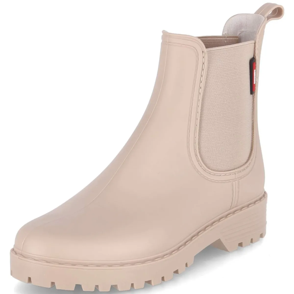 Kaerlek interpretiert den Klassiker neu: Diese Chelsea Boots für Damen kombinieren einen modernen Material-Mix aus Textil und Synthetik mit funktionalen Details. Das wasserabweisende Obermaterial, elastische Seiteneinsätze und eine Anziehlasche ermöglichen einen unkomplizierten Einstieg, während die verstärkte Ferse und die profilierte Laufsohle sicheren Halt bieten. Der 3 cm hohe Blockabsatz und die runde Spitze balancieren Komfort und Eleganz. Ein gepolstertes, herausnehmbares Wechselfußbett und eine textile Decksohle sorgen für angenehmes Tragegefühl im Alltag. Die Farbe Beige zeigt je nach Licht einen feinen Rosaton. Da das Modell schmaler ausfällt, lautet die Empfehlung: eine Nummer größer bestellen. Modetipp: Zu cropped Straight-Leg-Jeans und einem Trenchcoat in ähnlichen Beigetönen entsteht ein cleaner City-Look.