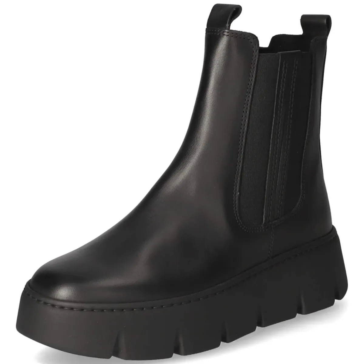 Zeitlos und urban: Diese schwarzen Chelsea Boots von Gabor vereinen markante Silhouette und hohen Tragekomfort. Glattleder in langlebiger Qualität wird von modischen Ziernähten, einem seitlichen Elastikeinsatz mit zwei Zierstreifen und einer verstärkten Ferse akzentuiert. Ein 4,5 cm hoher Plateauabsatz sorgt für dezente Höhe und einen sicheren Stand, die rutschfeste Laufsohle gibt Halt auf glatten Untergründen. Der bequeme Reißverschlußeinstieg erleichtert das Anziehen, zwei Anziehlaschen unterstützen zusätzlich. Innen verwöhnt leichtes Futter an kühleren Tagen, die textile Decksohle und das Wechselfußbett bieten komfortable Anpassung. Mit runder Spitze bleibt die Optik klassisch. Größenhinweis: fällt normal aus. Modetipp: Zu Cropped-Jeans und einem strukturierten Wollmantel entsteht ein cleaner Look mit modernem Finish.
