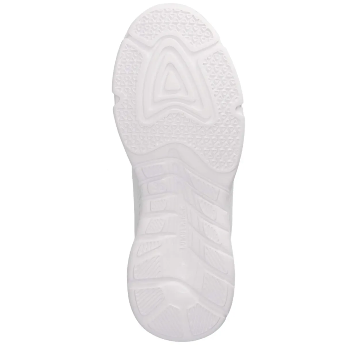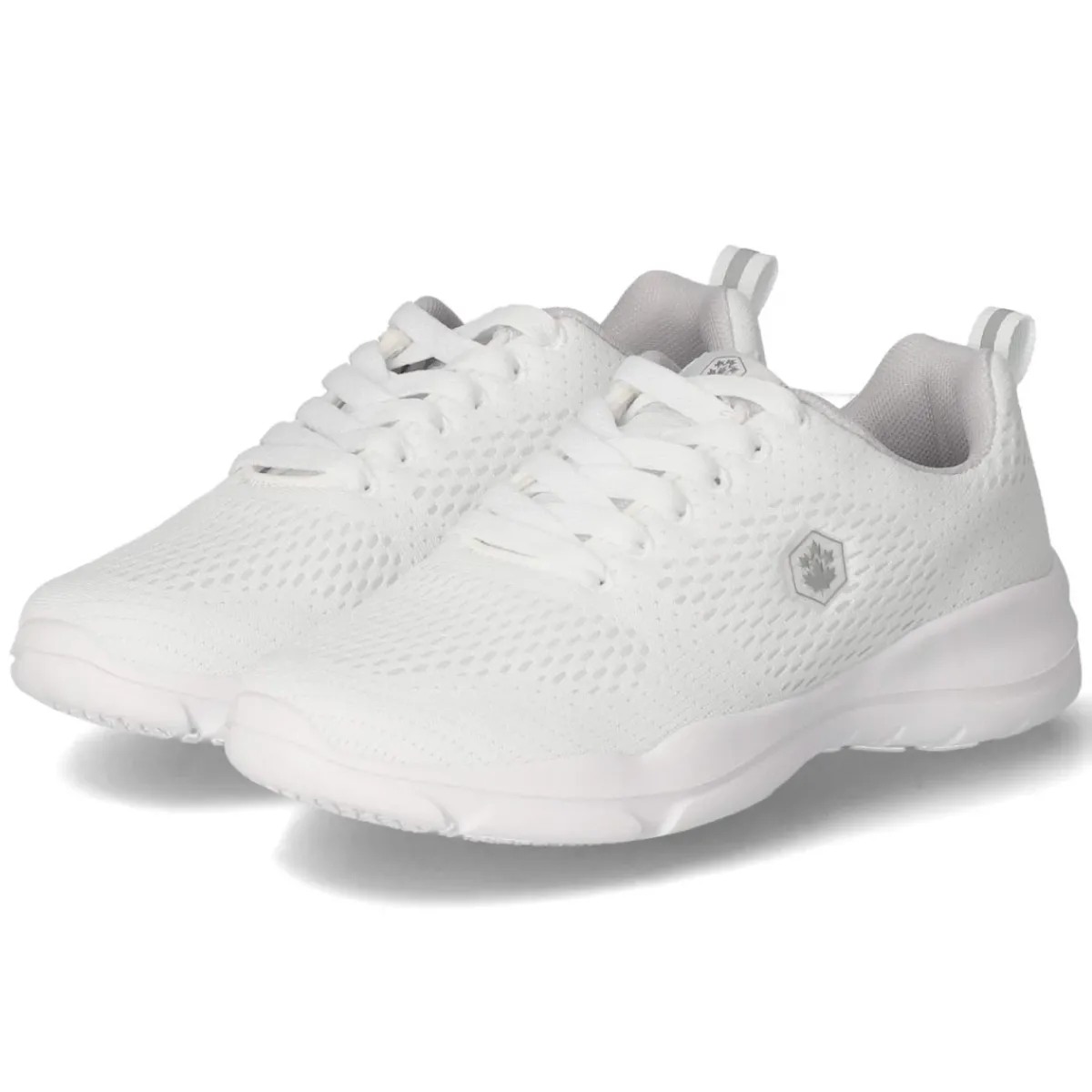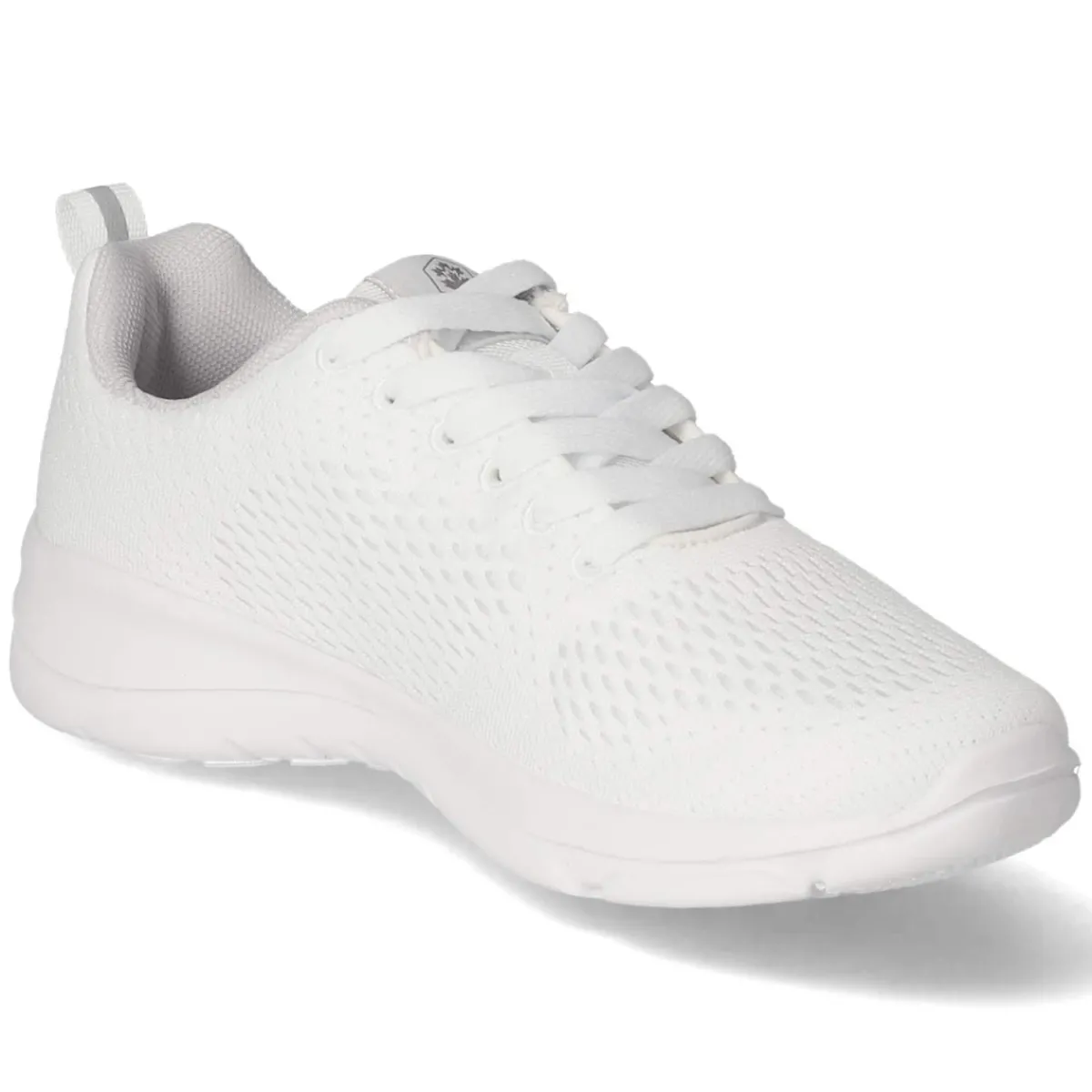 Der Low Sneaker AGATHA von Lumberjack bringt sportliche Leichtigkeit in den Alltag. Das weiße Design wirkt angenehm pur und lässt das leichte Textilobermaterial mit atmungsaktivem Mesh voll zur Geltung kommen. Eine rund gearbeitete Spitze und der gepolsterte Einstieg sorgen zusammen mit der flexiblen Laufsohle für hohen Komfort. Das herausnehmbare, weich gepolsterte Memory-Foam-Fußbett bettet den Fuß sanft und kann bei Bedarf gegen eigene Einlagen getauscht werden. Dank Schnürung lässt sich die Passform individuell regulieren, reflektierende Details setzen dezente Akzente und erhöhen die Sichtbarkeit. Die Passform fällt normal aus; Decksohle und Innenleben bestehen aus Textil und schmiegen sich angenehm an. Markendetails runden den Look ab, eine Anziehlasche erleichtert den Einstieg. Modetipp: Zu cropped Jeans und einem monochromen Hoodie entsteht ein moderner Athleisure-Look, der von weißen Tennissocken stilvoll begleitet wird.