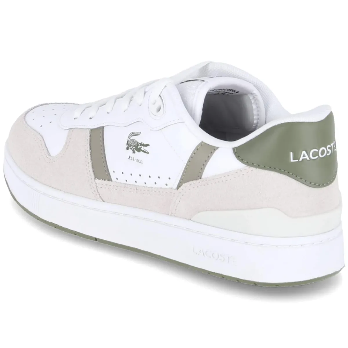Der Low Sneaker T-CLIP SET von Lacoste bringt klare Tennis-DNA in den Alltag. Das weiße Obermaterial aus Leder und Textil steht für einen robusten Material-Mix, akzentuiert durch khakifarbene Highlights. Eine runde Schuhspitze und der klassische Verschluss mit Schnürsenkeln sorgen für eine zeitlose, moderne Optik. Für Tragekomfort im Erwachsenenalltag stehen gepolstertes Fußbett, gepolsterter Einstieg sowie die flexible, rutschfeste Cupsohle, die sicheren Halt bietet. Verstärkter Fersen- und Zehenbereich erhöhen die Langlebigkeit, während Seiten- und Frontlochung atmungsaktive Leichtigkeit verleihen. Die textile Decksohle unterstützt ein angenehmes Fußklima. Der Schnitt fällt schmaler aus; je nach Fußform empfiehlt sich die Wahl einer Nummer größer. Modetipp: Mit schmalen Chinos, sportlichen Tennissocken und einem minimalistischen Poloshirt entsteht ein cleaner Look, der Eleganz und Sportlichkeit sorgfältig ausbalanciert.