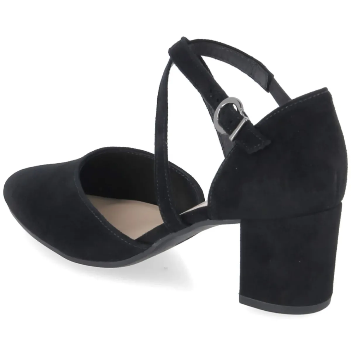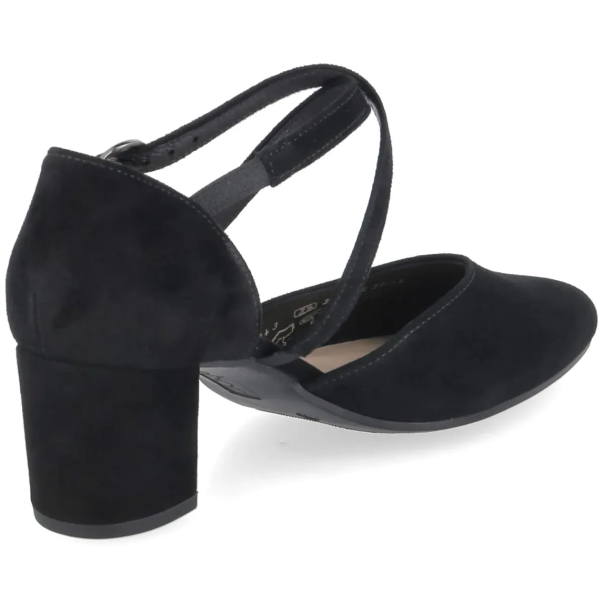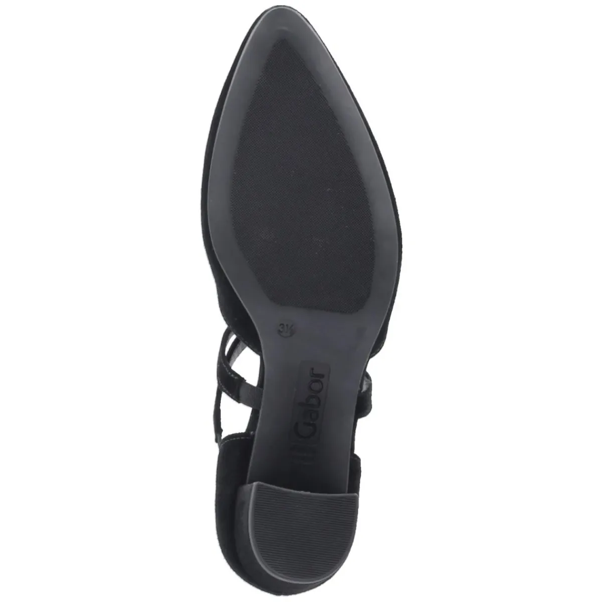 Gabor interpretiert den klassischen Damen-Pumps in edlem Schwarz mit spitzer Silhouette und samtiger Raulederoberfläche neu. Die gekreuzten Riemchen mit Elastikeinsatz schmiegen sich sicher über den Spann, während die Schnalle mit Druckknopf das Schließen angenehm unkompliziert macht. Ein 6 cm hoher Blockabsatz sorgt für stabile Eleganz, die flexible, rutschfeste Laufsohle gibt Halt auf glatten Böden. Innen verwöhnt ein weich gepolstertes Fußbett, die Decksohle aus Leder reguliert das Klima und erhöht den Tragekomfort. Der Schnitt fällt normal aus und passt sich dem Alltag ebenso an wie festlichen Momenten. Ein vielseitiger Begleiter, der durch klare Linien und hochwertige Verarbeitung überzeugt. Modetipp: Besonders wirkungsvoll zu einem schmalen Etuikleid oder zu Cropped-Culottes und einem feinen Stricktop, für einen modernen, femininen Auftritt.