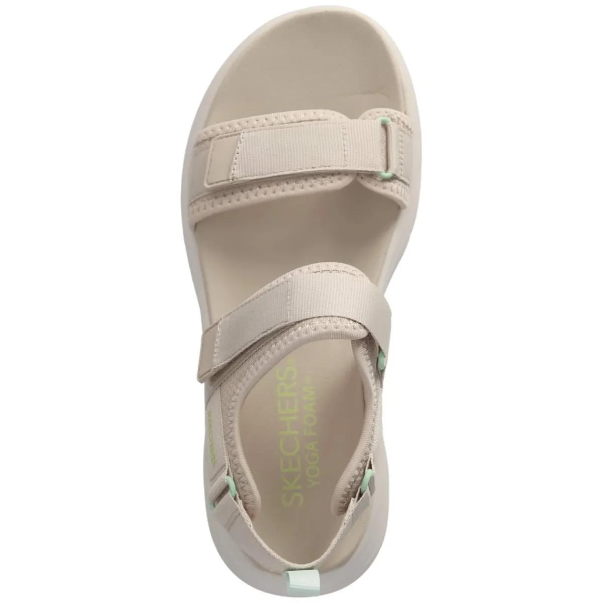 Die Sandalen LAIDBACK MOMENTS von Skechers verbinden entspannten Sommer-Charme mit funktionalen Details. Das beige Textil-Obermaterial wird durch pastellgrünfarbene Akzente und feine Markendetails betont, während zwei praktische Klettverschlüsse einen sicheren Sitz und schnelles An- und Ausziehen ermöglichen. Ein weich gepolstertes Fußbett und die flexible Laufsohle sorgen für hohen Tragekomfort auf Stadtspaziergängen wie am Strand. Die offene Schuhspitze lässt Luft zirkulieren, die synthetische Decksohle ist pflegeleicht, und das Modell ist sogar waschmaschinengeeignet. Aus veganen Materialien gefertigt, fällt der Schuh größengetreu aus und passt zu vielen Sommer-Looks. Modetipp: Mit Leinenhose, gestreiftem Hemd und Accessoires in zarten Grüntönen entsteht ein frischer, harmonischer Auftritt.