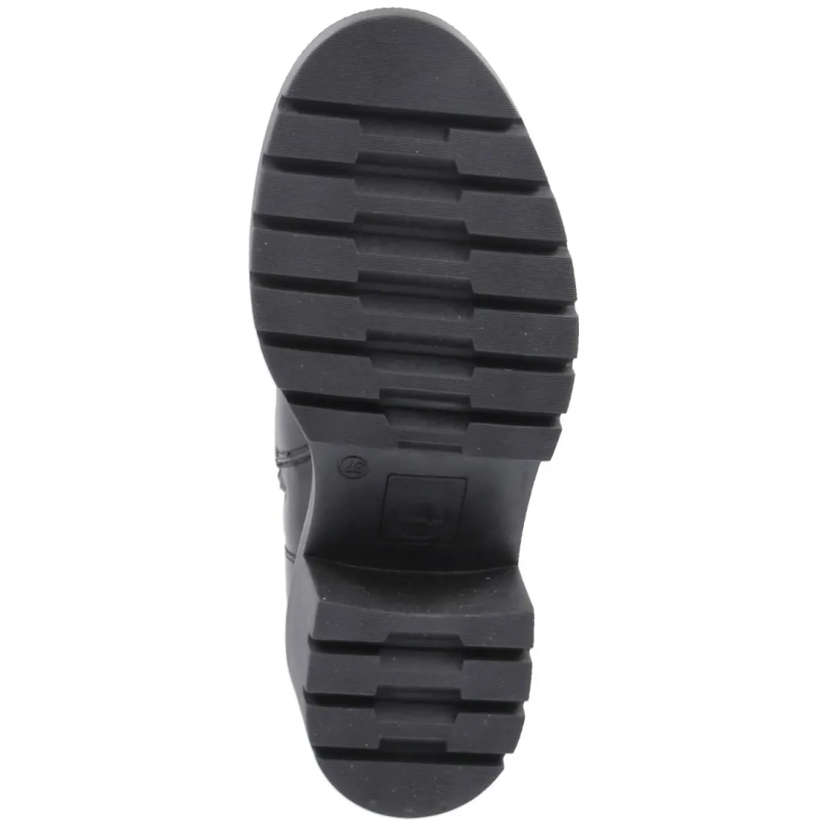 Der Tamaris Schnürboot in klassischem Schwarz verbindet urbane Eleganz mit verlässlichem Komfort. Das Obermaterial aus langlebigem Echtleder zeigt eine glatte, edle Oberfläche und wird durch eine verstärkte Ferse und eine praktische Anziehlasche ergänzt. Für bequemes An- und Ausziehen sorgt die Kombination aus Schnürung und seitlichem Reißverschluss, während ein gepolstertes Fußbett und die rutschfeste Profilsohle angenehmen Halt im Alltag bieten. Der 7,5 cm hohe Blockabsatz steht stabil, das kleine Plateau von ca. 3 cm entlastet den Fuß zusätzlich. Mit runder Schuhspitze, normaler Passform und einer Decksohle aus Textil & Synthetik überzeugt der Damen-Boot als vielseitiger Begleiter von früh bis spät. Modetipp: Zu Midirock und Strickpullover entsteht ein moderner City-Look, akzentuiert durch einen strukturierten Wollmantel.