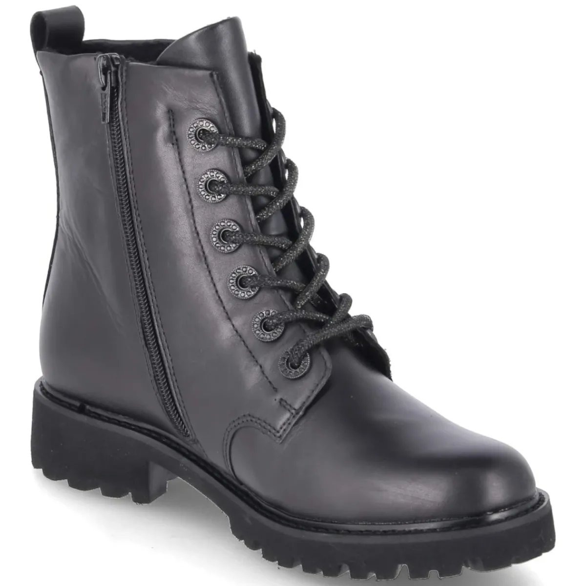 Dieser Remonte Schnürboot in klassischem Schwarz vereint klare Linien mit komfortabler Ausstattung. Hochwertiges, langlebiges Echtleder in glatter Ausführung umschließt den Fuß, die runde Spitze und ein 4 cm hoher Blockabsatz sorgen für entspanntes Gehen. Im Inneren verwöhnt ein leichtes Futter an kühlen Tagen, die textile Decksohle liegt angenehm auf. Als relaxtes Leichtgewicht beeindruckt das Modell mit Wechselfußbett, das bei Bedarf im Handumdrehen ausgetauscht werden kann. Praktisch und stilvoll zeigen sich Schnürsenkel mit funkelnder Glitzerschnürung sowie der seitliche Reißverschluss, eine Anziehlasche erleichtert das Hineinschlüpfen, der verstärkte Fersenbereich erhöht Stabilität. Der Schnitt fällt normal aus und richtet sich an erwachsene Trägerinnen. Modetipp: Zu Cropped-Jeans, Rollkragenpullover und Wollmantel entsteht ein urbaner Look; für feminine Akzente passt ein Midirock aus Satin.