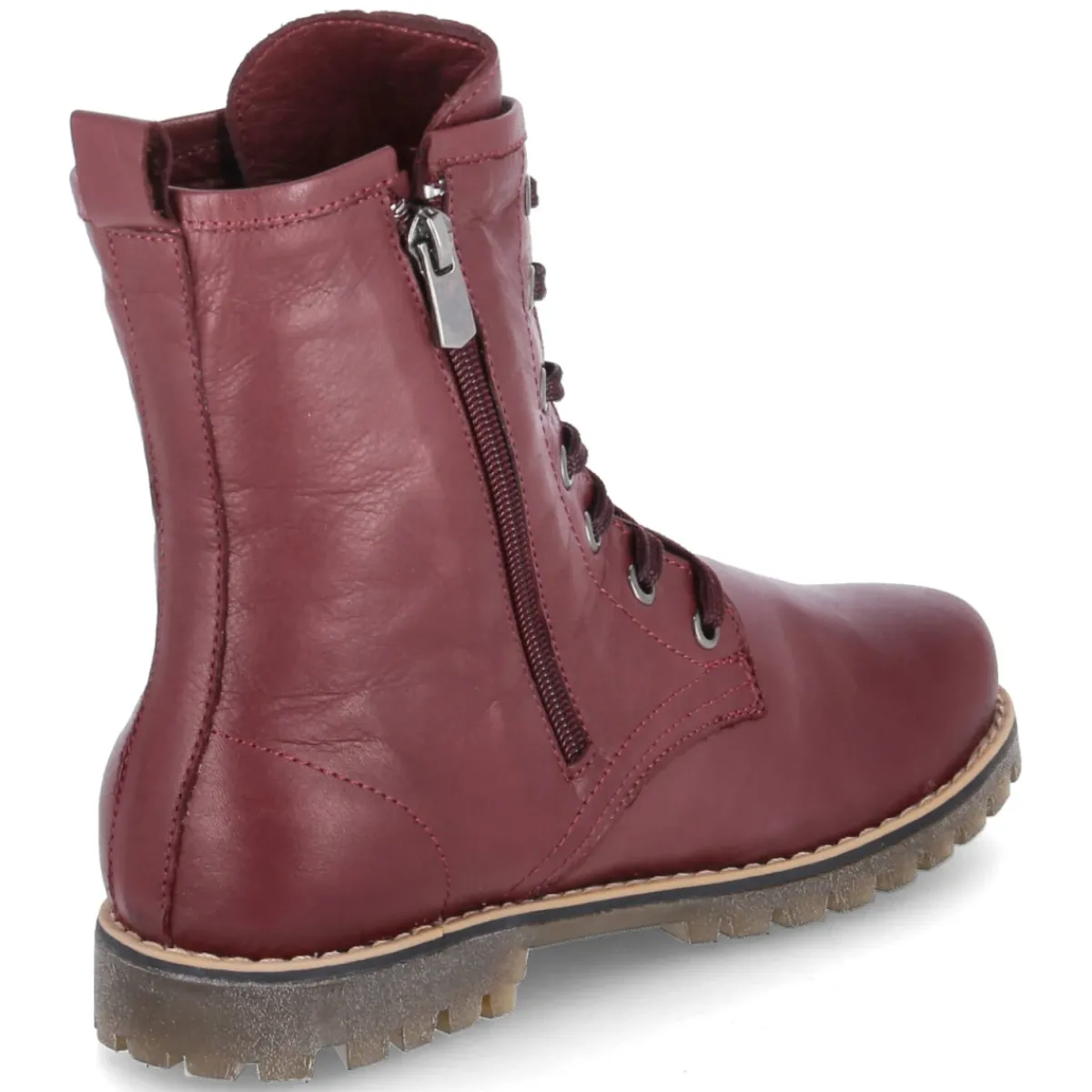Diese Schnürstiefeletten von Andrea Conti setzen mit sattem Rot und edlem Glattleder einen markanten Akzent. Das langlebige Echtleder umschließt den Fuß weich, während die runde Schuhspitze und der 2,5 cm hohe Blockabsatz entspanntes Abrollen begünstigen. Für angenehmes Klima und individuellen Komfort sorgt die gepolsterte, herausnehmbare Leder-Decksohle mit Wechselfußbett, die bei Bedarf gegen eigene Einlagen getauscht werden kann. Schnürung und zusätzlicher Reißverschluss erlauben schnelles An- und Ausziehen; die praktische Anziehlasche unterstützt dabei. Eine flexible, rutschhemmende Laufsohle und der verstärkte Fersenbereich bieten Stabilität bei geringem Gewicht. Der Schnitt fällt normal aus und eignet sich ideal für den Alltag. Modetipp: Mit dunkelblauer Straight-Jeans und einem cremefarbenen Strickpullunder kommt der Rotton besonders edel zur Geltung.