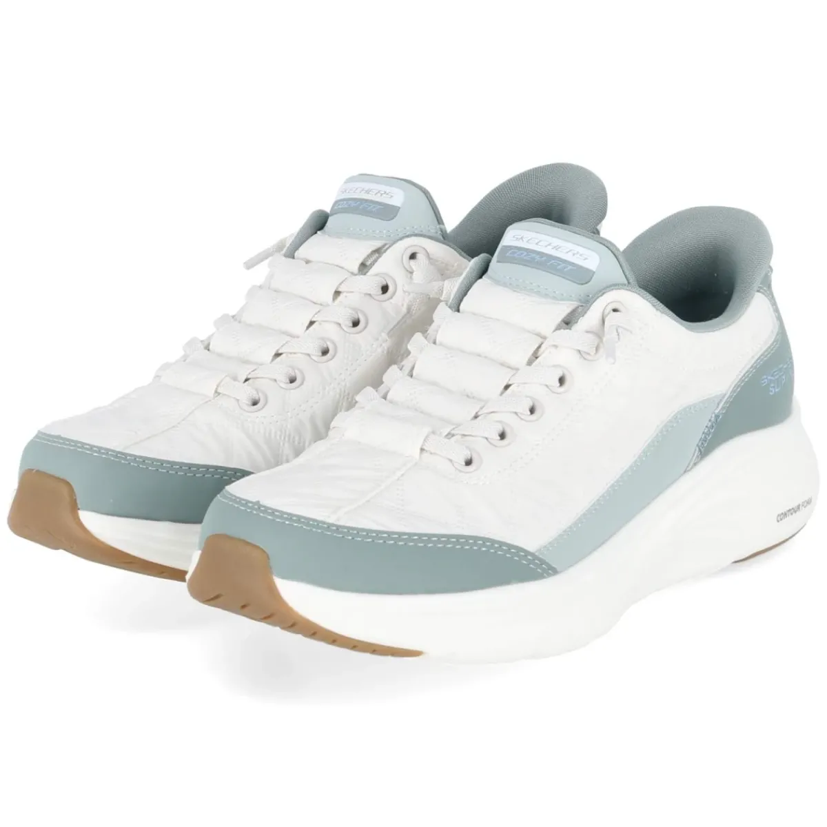 Der Slip-ins Sneaker CONTOUR FOAM von Skechers vereint unkomplizierten Komfort mit sportlichem Design. Das grüne Obermaterial aus Textil und Synthetik zeigt eine dezent karierte Prägung, die mit dem Elastikband in Schnüroptik modern akzentuiert wird. Dank Gummizug gleitet der Fuß mühelos hinein, der gepolsterte Einstieg und die beste Memory-Foam-Fußbettung sorgen den ganzen Tag für weiche Dämpfung. Vegane Materialien, eine textile Decksohle sowie verstärkte Fersen- und Zehenbereiche erhöhen den Tragekomfort. Die flexible Laufsohle mit rutschfesten Elementen bietet zuverlässigen Grip, während das relaxtes Leichtgewicht bei jedem Schritt überzeugt. Pflegeleicht und waschmaschinengeeignet bleibt der Sneaker schnell frisch. Fällt normal aus, mit runder Spitze für angenehme Zehenfreiheit. Modetipp: wirkt besonders stimmig zu weiter Denim, beiger Trench-Jacke und feinen Sportsocken.