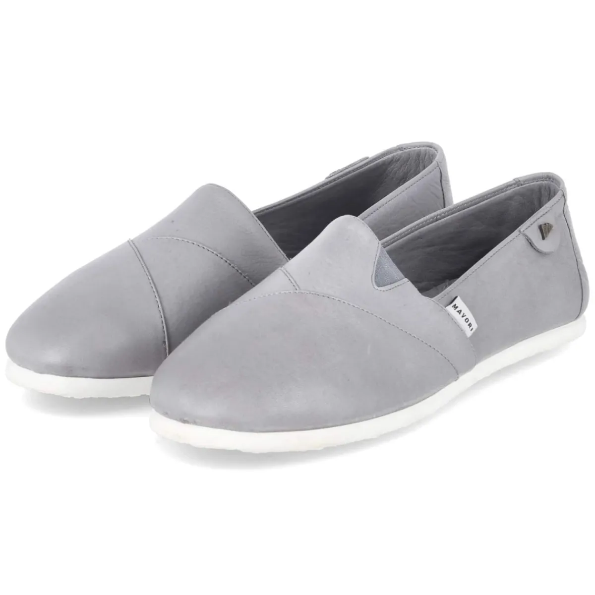 Der graue Slipper von Mayori steht für lässige Eleganz und lange Lebensdauer. Glattes, hochwertiges Echtleder umschließt den Fuß weich, die runde Spitze und die normale Passform sorgen für entspannten Raum. Ein elastischer Keil am Spann erleichtert das Hineinschlüpfen, während das gepolsterte, lederbezogene Wechselfußbett individuellen Komfort ermöglicht – ideal auch für eigene Einlagen. Die dünne, flexible Laufsohle mit griffiger Struktur gibt natürliche Abrollbewegung und sicheren Halt, ohne zu beschweren. Dezent gesetzte Ziernähte und ein kleines Markenlabel runden den puristischen Look ab. Als relaxtes Leichtgewicht eignet sich das Modell für Alltag, Büro und Reise gleichermaßen. Modetipp: Zu grauen oder navyfarbenen Chinos und einem unstrukturierten Sakko entsteht ein smarter City-Look.