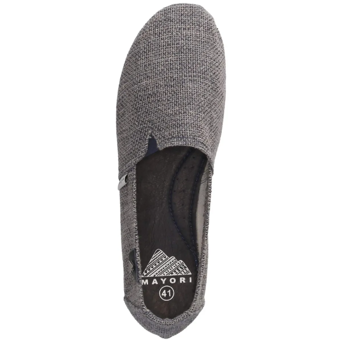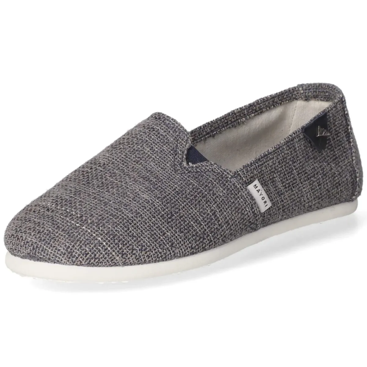 Der Mayori Slipper präsentiert sich als zeitloser Begleiter in dunklem Blau und verbindet lässige Canvas-Optik mit durchdachter Funktion. Das leichte Textilobermaterial sorgt für angenehme Luftzirkulation, während der kleine Elastikeinsatz den unkomplizierten Einstieg unterstützt und sicheren Halt bietet. Eine verstärkte Ferse erhöht die Formstabilität, die flexible Laufsohle fördert ein natürliches Abrollen. Innen verwöhnt eine Decksohle aus Leder, das komfortable Wechselfußbett lässt sich bei Bedarf austauschen oder lüften. Die runde Schuhspitze unterstreicht den entspannten Look, Markendetails setzen dezente Akzente. Hinweis zur Passform: fällt schmaler aus, daher empfiehlt sich die Bestellung eine Nummer größer. Ein echtes Leichtgewicht für Alltag und Reise. Modetipp: Perfekt zu sandfarbenen Chinos und gestreiftem Bretonshirt oder zu hell gewaschener Denim.