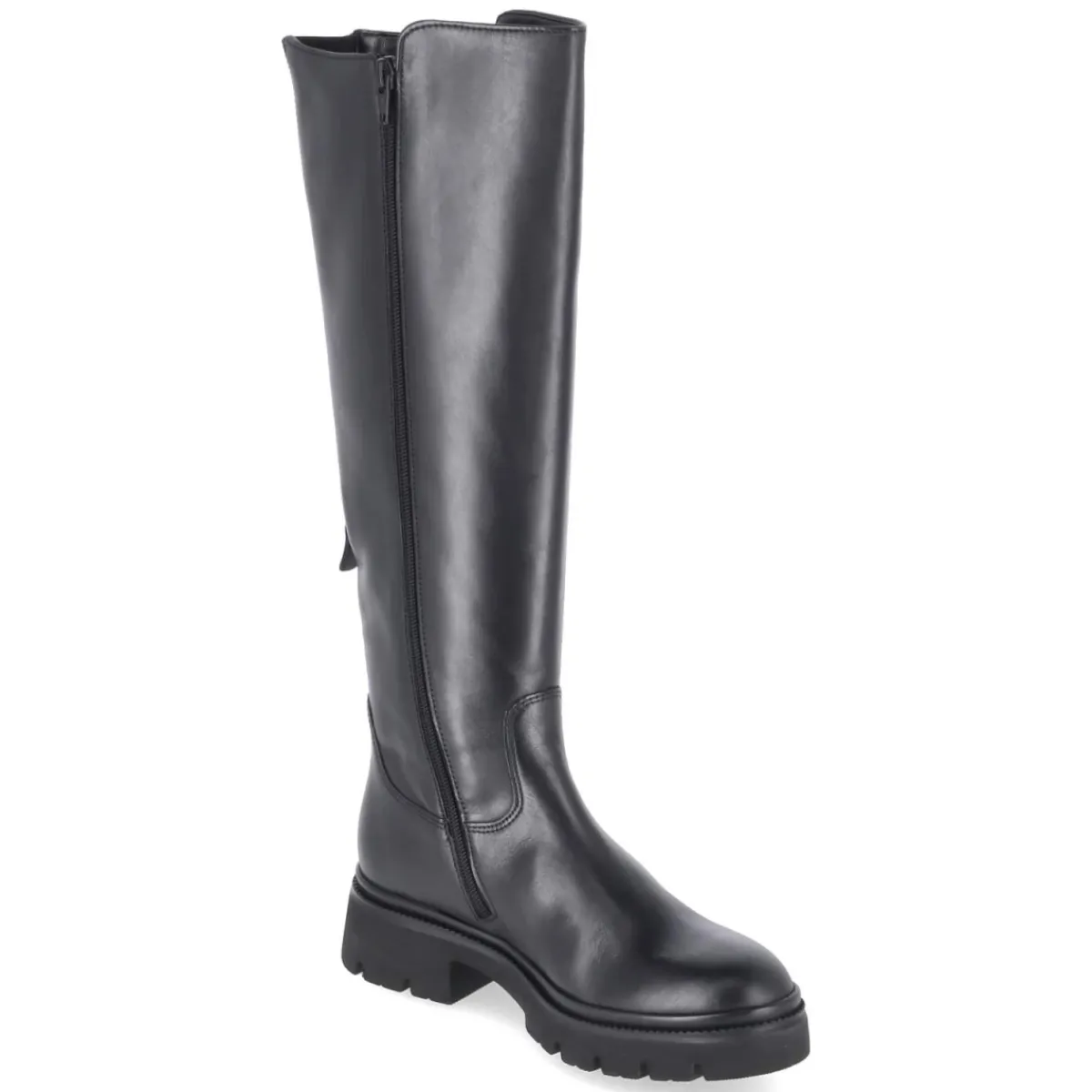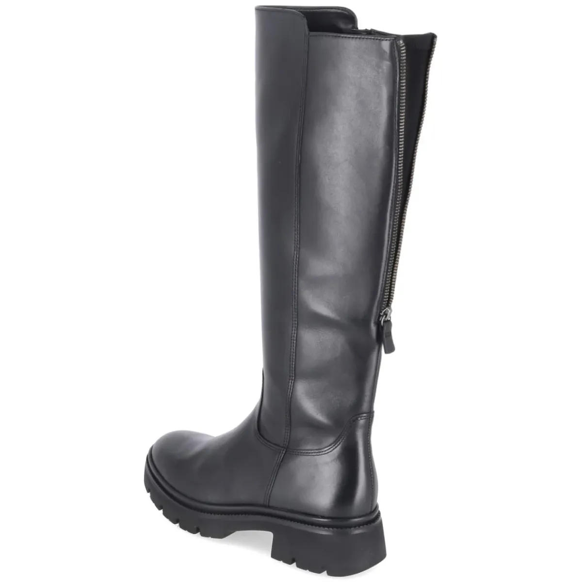 Der schwarze Damenstiefel von Gabor verbindet urbanen Chic mit durchdachtem Komfort. Der robuste Material-Mix aus Leder und Textil gibt Formstabilität, während die textile Decksohle und das weich gepolsterte Fußbett langes Tragen angenehm machen. Dank Wechselfußbett eignet sich das Modell auch für eigene Einlagen. Ein 4 cm hoher Blockabsatz sorgt für sicheren Stand, die runde Spitze schafft Bewegungsfreiheit. Praktische Reißverschlüsse erleichtern den Einstieg; zusätzlich erlaubt ein rückseitiger Zipper die Schafterweiterung. Mit Schaftweite M und Maßen von ca. 40 cm Höhe und 34 cm Umfang fällt der Stiefel normal aus. Die rutschfeste Profilsohle unterstützt bei wechselnden Untergründen. Modetipp: Zu einem Midirock aus Satin und einem strukturierten Wollmantel entsteht ein moderner Kontrast, den ein schwarzer Ledergürtel harmonisch aufgreift.